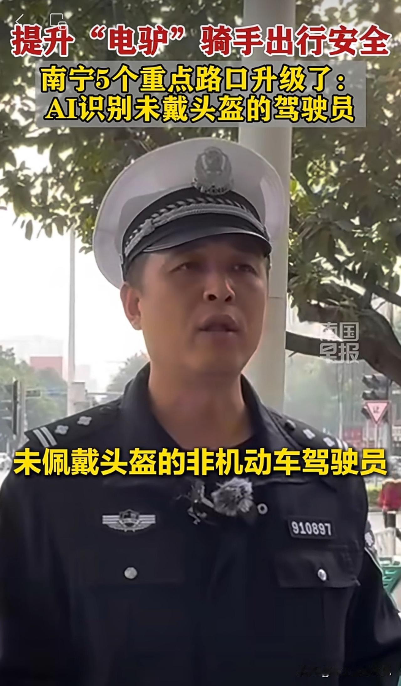 南宁这波路口升级,可真是把“科技与狠活”用在了电动车管理上!现在过个这几个路口,不光地上涂得跟“蓝色海洋馆”似的防滑路面,头顶还有个AI管家盯着未戴头盔的电驴骑手喊话:“请佩戴好头盔”! 网友:提醒是第一步,希望下一步把电动自行车超速、闯红灯、逆行、占道骑行、违规停放等也能严抓起来! 南宁身边事 电动车上路必须戴头盔,你同意吗 电动车