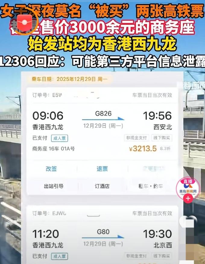 石家庄,一女子凌晨四点睡梦中,被手机提示音吵醒,点开一看,竟是高铁订票成功的信息,女子顿时懵了,自己根本没买票,有人竟冒用她的身份信息,订了两张商务座,一张从香港到北京西,一张从香港到西安北,两张票总价7000多元。信息显示,车票是线下购买的,而且用的是非现金支付。女子赶紧联系客服咨询怎么回事,客服的一番话,让她瞬间如梦初醒。   石家庄的冬夜,正是万籁俱寂的时候,杨女士裹在温暖的被窝里,睡得正沉。   突然,床头柜上的手机“叮”地响了一声,短促却清晰的提示音在安静的房间里格外刺耳。   杨女士皱了皱眉,迷迷糊糊地翻了个身,心里暗忖多半是广告推送之类的垃圾信息。   可这声响动彻底搅乱了她的睡意,实在睡不着的她,伸手摸索过手机,点亮屏幕准备随手删掉那条信息。   屏幕亮起的瞬间,一行加粗的通知标题撞入眼帘——“12306购票成功通知”。   杨女士的脑子瞬间“嗡”了一下,整个人僵在原地。   她近期根本没有任何出行安排,更别说主动去买高铁票了,这张购票成功通知来得莫名其妙。   带着满心的错愕,她颤抖着手指点开通知详情,里面的内容让她倒吸一口凉气:她的身份证号下,竟然绑定了两张商务座车票。   这两张票的出发站都是香港西九龙,出发时间都是12月29日,一张去往北京西,一张去往西安北,两张票的总价加起来足足有7000多元。   很明显,有人冒用了她的身份信息购买了这两张高价车票,这个认知让她浑身发冷,再也没有半点睡意。   她攥着手机,在焦虑中等到了天亮,刚到早上八点,就迫不及待地拨通了12306的官方客服电话。   电话接通后,她语速飞快地把事情的来龙去脉讲了一遍,语气里满是焦急和不解。   客服听完后,没有过多迟疑,直接给出了核心判断:这种情况,基本可以确定是个人身份信息泄露导致的。   客服还进一步解释,线下窗口购票时,工作人员一般只核对身份证上的信息与购票录入的信息是否匹配,并不会强制要求人脸识别。   也就是说,只要不法分子拿到了杨女士的身份证复印件,或者清晰的身份证翻拍照片,就有可能顺利完成购票流程。   不过客服也随即安抚了杨女士的情绪,告诉她不用过分担心冒用乘车的问题。   现在全国的高铁站都实行“人、证、票”三合一的核验模式,无论是自助检票还是人工检票,都会严格核对这三项信息,少一项都无法进站。   尤其是从香港西九龙站出发的列车,除了身份证和车票,还必须出示有效的港澳通行证以及合规的签注,过海关的时候会进行严格核查,冒用身份乘车根本不现实。   就算有人想钻空子办临时身份证明,也需要提供驾照、社保卡之类的辅助证件,经过人工仔细核验后才能办理,单靠一张临时证明根本进不了站。   得知冒用者无法乘车,杨女士悬着的一颗心稍微放下了一些,但身份信息被滥用的愤怒却丝毫未减。   在客服的指导下,她当即操作办理了两张车票的退票手续,又马不停蹄地修改了自己12306账户的密码,还特意设置了更复杂的密码组合,生怕再出现类似的漏洞。   可处理完这些,杨女士的心里依旧充满了疑惑和不安。   她的身份证从来没有丢失过,也没有外借过,身份信息到底是怎么泄露出去的?   她仔细回想了一下,自己平时为了抢热门车票,经常会用一些第三方抢票平台,会不会是这些平台的信息保护不到位,导致自己的身份证号、手机号等敏感信息被泄露了?   身边的亲戚朋友知道她的遭遇后,都纷纷过来出主意,有人说应该赶紧报警备案,有人提醒她去查一查自己的银行卡有没有异常交易,还有人让她去征信中心查一下信用记录。   这些五花八门的建议,不仅没让她安心,反而让她更加慌乱,不知道该从哪里下手。   最让她委屈的是,明明自己是受害者,却要花费大量的时间和精力去证明“这两张票不是我买的”,去处理这些莫名其妙的麻烦。   这件事之后,杨女士的生活节奏也被打乱了。   她每天早上醒来第一件事就是查看手机短信,生怕再收到什么陌生的消费通知或者购票信息,晚上睡觉也总是不踏实,总觉得有人在盯着自己的个人信息。   她忍不住和身边人吐槽,现在生活里到处都要留下个人信息,网购要填身份证号和手机号,刷卡消费要留信息,就连去个景区买票都要登记信息,这些信息到底能不能被安全保管,谁也说不准。   今天的分享到这里就结束了,大家对此事有何看法,欢迎在评论区留言和讨论,感兴趣的可以点击头像加关注,我将每日更新优质内容,我们下期见。