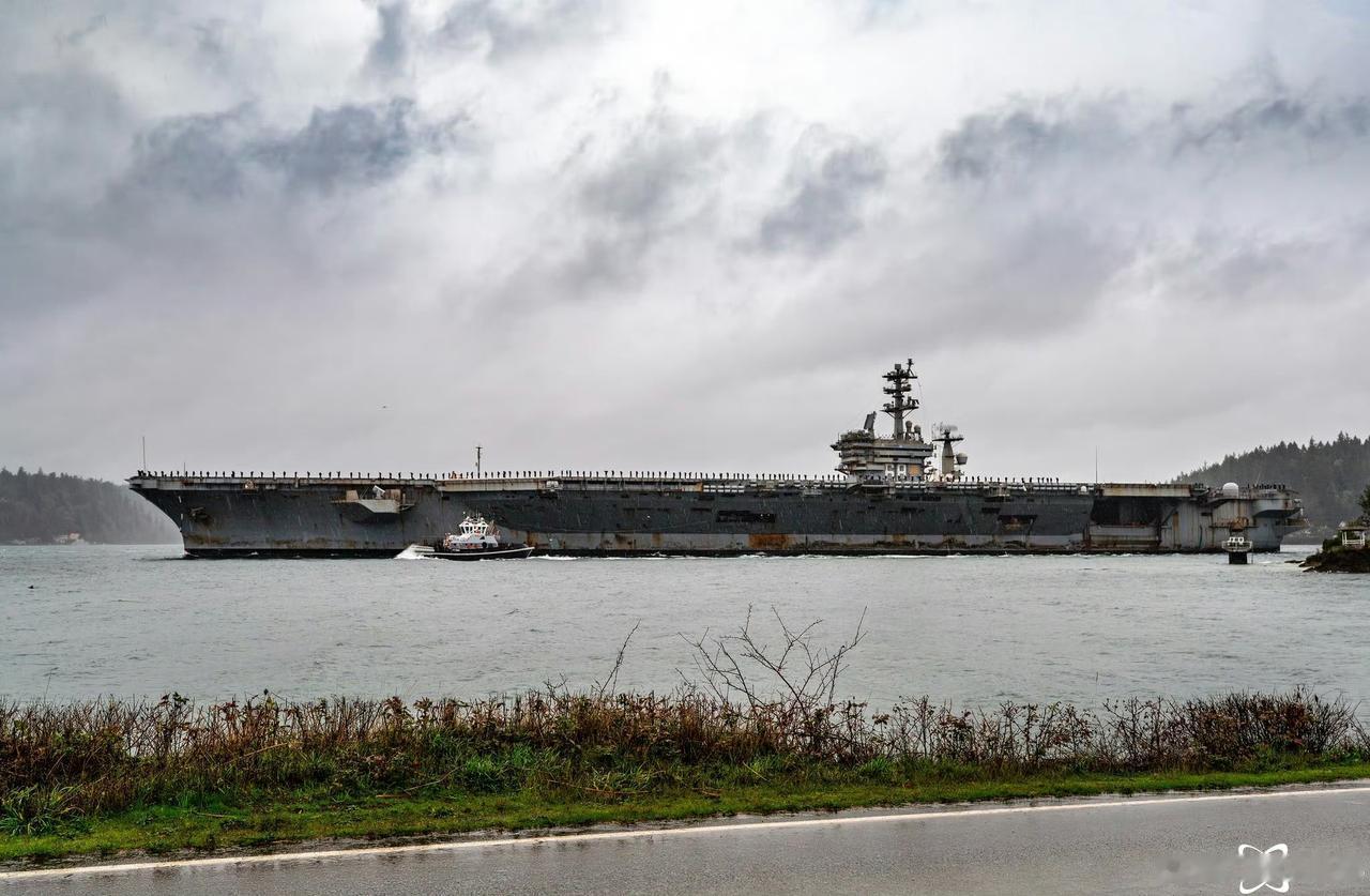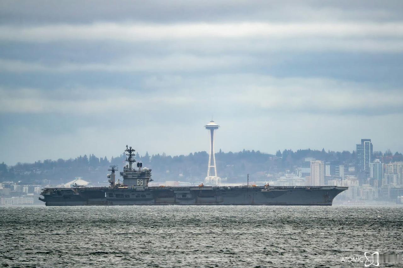 西雅图的雾蒙蒙与满身锈迹斑斑的尼米兹号航母(CVN-68)很般配