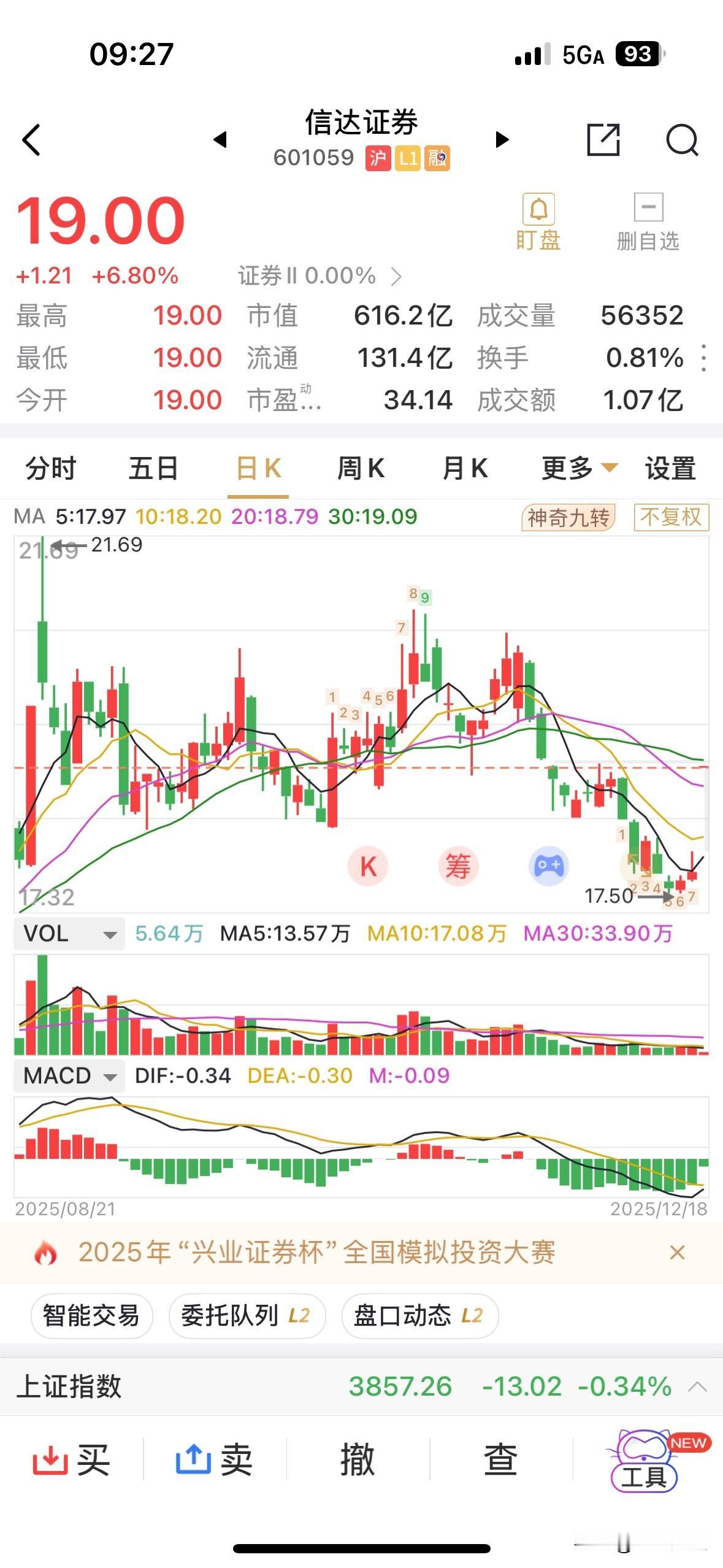 信号不好,重组归来首日,信达证券仅高开6.8%!!! 这是想跳水节奏吗!