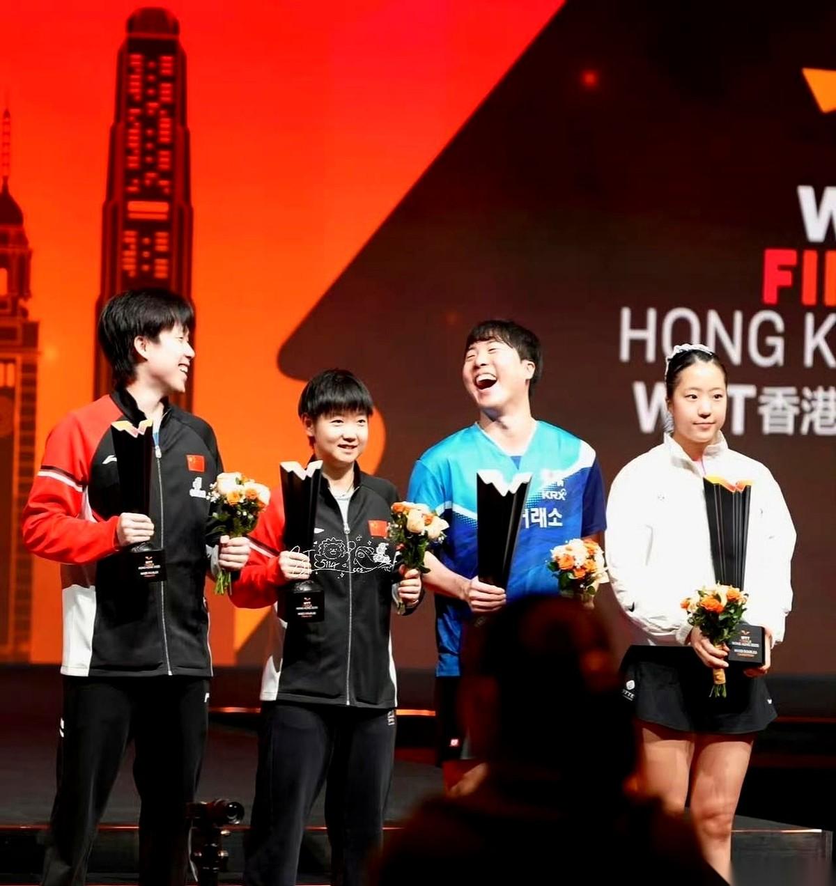 有些人的笑点,你真的搞不懂。 就比如,莎莎特认真地说“我准备好拍照了”。 多正常一句话,对吧? 旁边那位,“嘻嘻嘻嘻”就笑开了。 不是那种“哈哈哈哈”的大笑,旁边韩指导那个才是。他的笑,是那种“哎哟这俩小孩儿真有意思”的慈爱。 但“嘻嘻嘻嘻”不一样。 这里面有种默契,有种只有他俩才懂的梗,有种“你怎么这么可爱”的宠溺。 真的,有时候看他们,打动我的根本不是又赢了什么冠军。 而是这些瞬间。 训练场上,聚光灯外,卸下一身铠甲,就是两个会打打闹闹、会因为一句普通的话而笑场的大孩子。 这才是搭档的灵魂吧。 那种松弛感,那种“有我在你旁边”的安全感,是任何技术都替代不了的。 这种东西,比看他们拿金牌还让人上头。