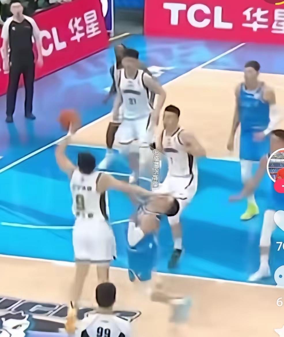 比分这时候也就差个位数,还有得追,辽宁队这场比赛打得很好,比北京好多了。这话说的,好得多,还落后,不矛盾吗?就在这个犯规前,北京领先五分,顶多算半斤八两呀。