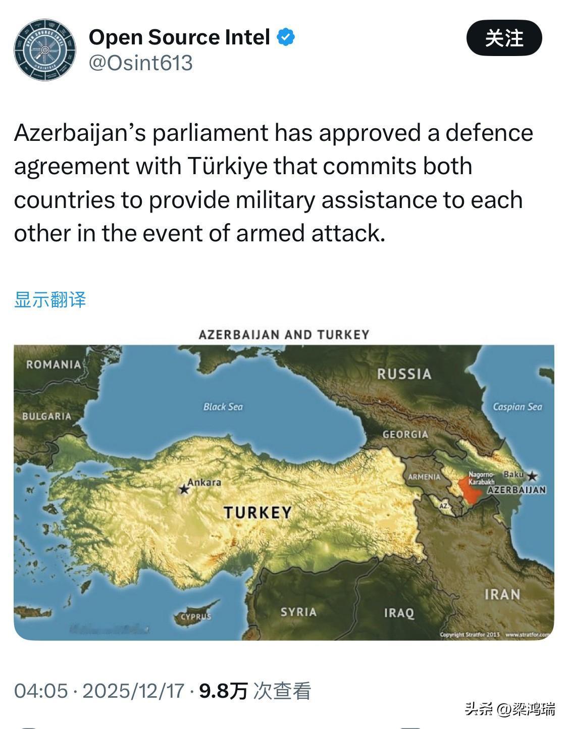 阿塞拜疆议会批准了与土耳其的一项防务协议,该协议承诺两国在发生武装攻击时向对方提供军事援助。