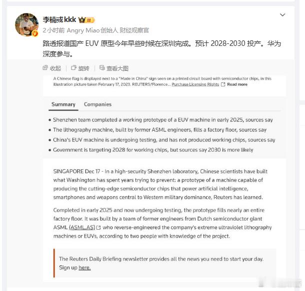 这绝对是个爆炸性消息了,我昨晚看到就很震惊了主要他不是互联网编的段子,是外媒的报道之前我们这边很多消息都是先放给外媒报道出来的