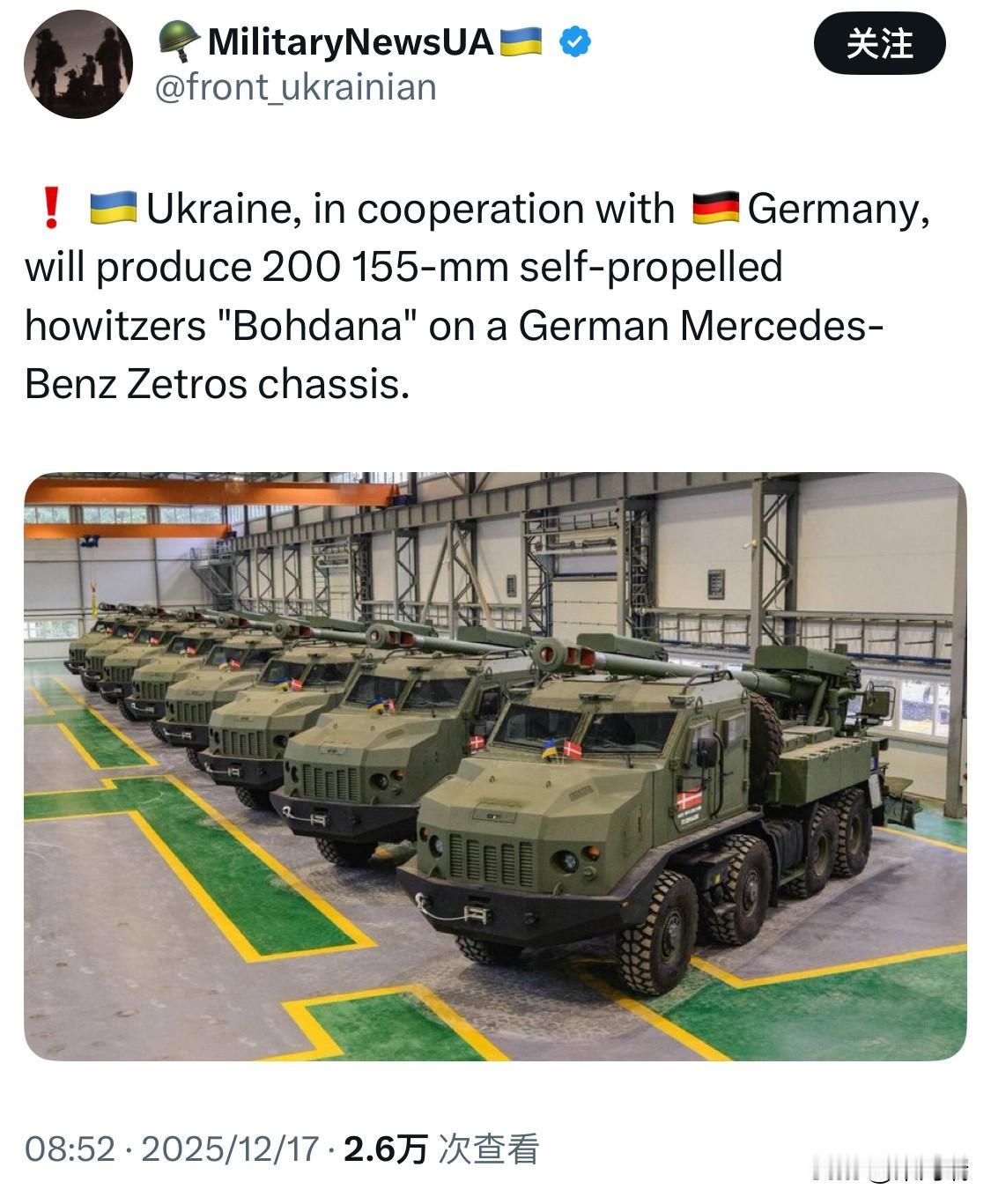 乌克兰将与德国合作,在德国梅赛德斯-奔驰Zetros底盘上生产200枚155毫米自走式榴弹炮“Bohdana”。