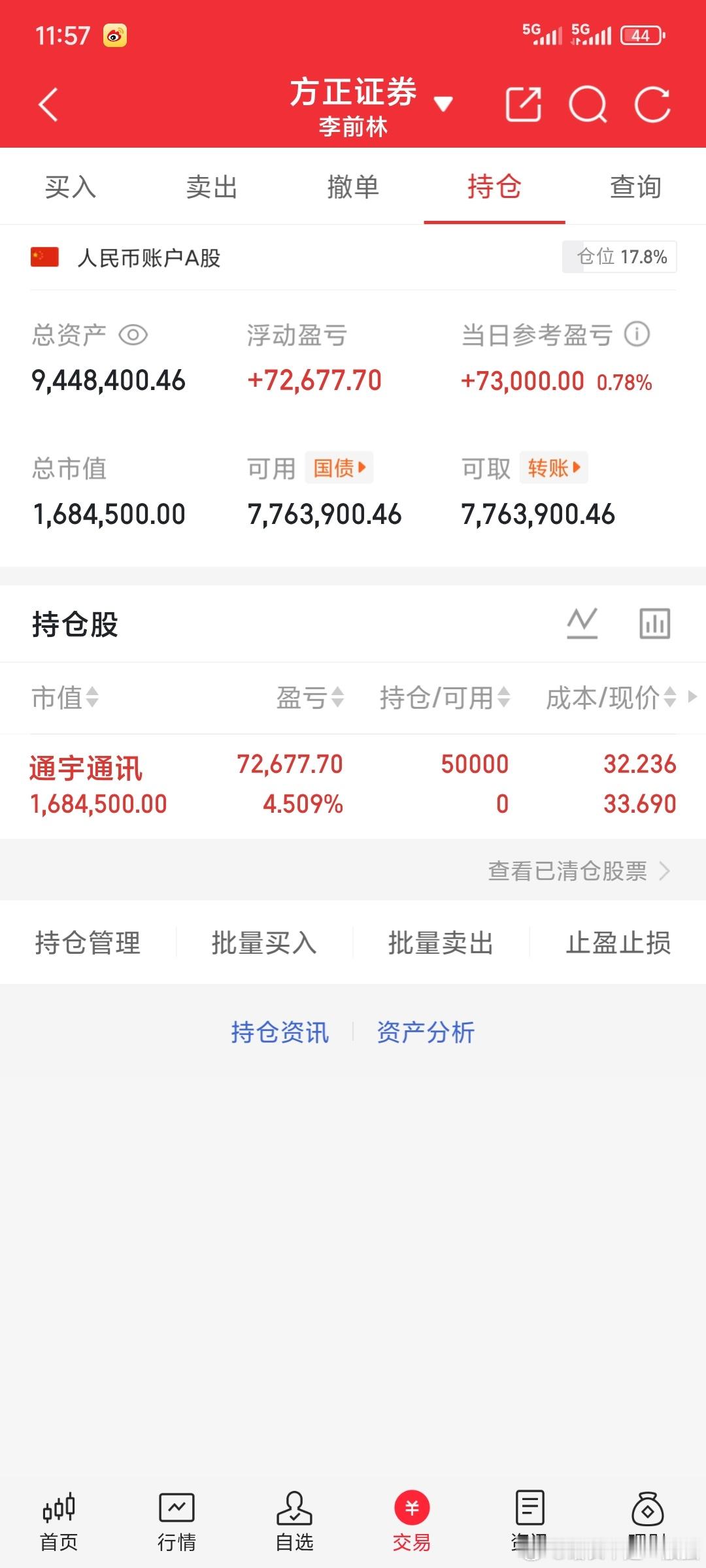 开仓今日买入:$通宇通讯 sz002792$ 开盘买入,4.5%盈利。看到的朋友点个赞,馆长每天坚持发出自己的操作记录,老铁们,点赞富三代,评论美一生!特别声明:这只是我个人的操作记录,不作为任何投资建议,更不是劝你们跟买,股市有风险,投资需谨慎!