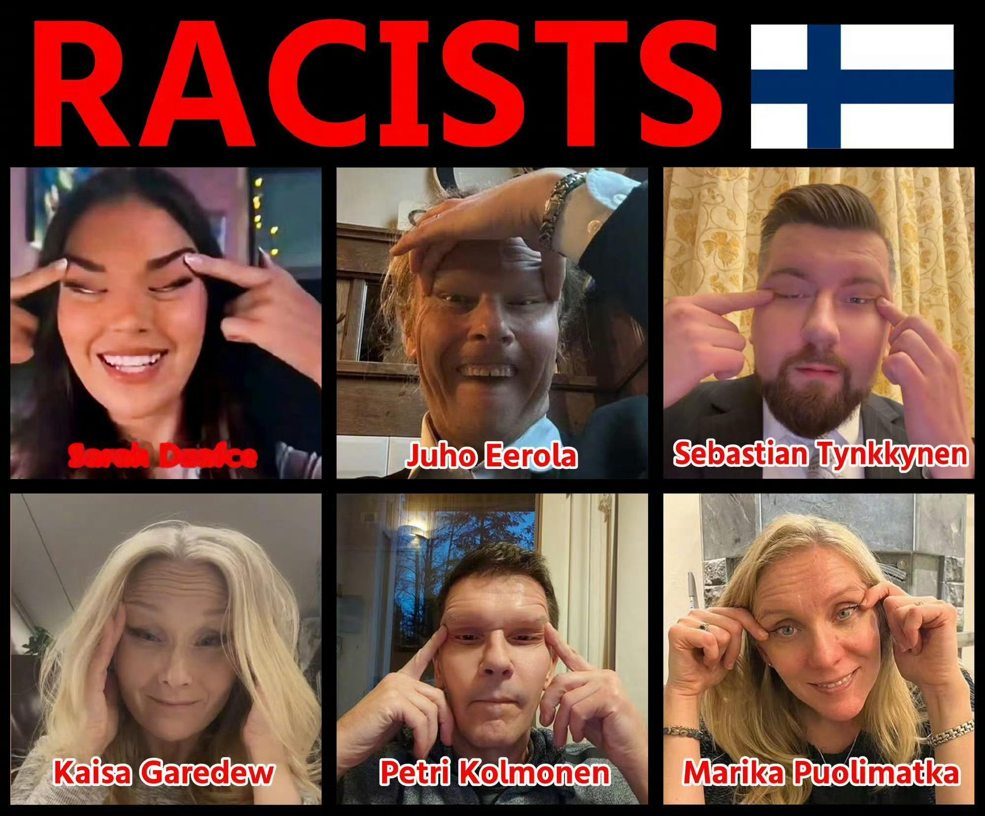芬兰种族歧视闹剧仍在持续因对着镜头做出“眯眯眼”鬼脸,还配文“和中国人一起吃饭