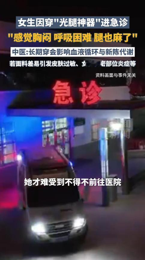 “悲剧还是发生了!”近日,一女子参加重要活动时,为了保持优雅的形象,又不想太冷,于是穿了条加厚的“光腿神器”,可几个小时后,女子却感觉胸闷、呼吸困难,双腿也变得麻木!最后实在受不了了,被送去医院急诊。网友:美丽的刑具! 女孩子都比较注重穿着打扮,冬天不愿穿得太臃肿,以免显得自己非常胖,而这几年,“光腿神器”的出现迅速收获了女生们芳心,看起来就像光着腿一样,非常的好看。 据媒体12月18日的报道,事发当天,张女士要去参加一场重要的活动,为了在大家面前展现出优雅的一幕,她自然不打算穿太多,但光着腿的话又怕冻感冒,再三挑选后,她穿了一条厚款的光腿神器。 活动从下午一直持续到晚上,张女士一开始并没有感觉异常,可过了几个小时,她就感觉有些勒得慌,稍微有些喘不上气。 但张女士无法离开,只能面露微笑的硬挺,结果身体愈发感觉不适,双腿也变得不听使唤,她终于忍受不住了,被家人送去了医院。 原来,张女士所穿的光腿神器太紧了,虽然紧身一点能突出身材,可是却也阻碍了血液循环,下肢的血液长时间受阻,身体能不难受才怪呐! 光腿神器说到底还是打底裤,只是换了个颜色罢了,女性朋友应选取松紧适度的款式,不要为了“瘦身”就强行勒,这样反而会损害身体。 信息来源:《女孩穿光腿神器进急诊胸闷、呼吸困难、腿发麻 医生:长期衣着过紧会影响血液循环 透气性差的还会滋生细菌》红星新闻