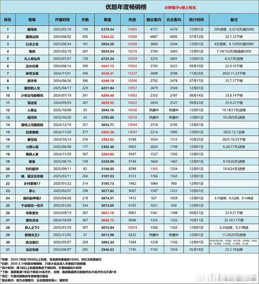 藏海传29h进年榜真的是很难打破的数字,这部剧进年榜的时候甚至剧情都没发展到口碑爆炸的“就是我命不该绝”剧情,全靠演员本人的号召力和前几集的节奏留住观众了。