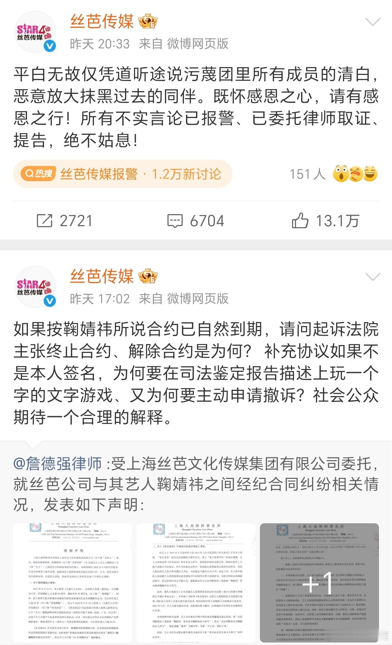丝芭不仅喊话鞠婧祎,还报警把曾艳芬告了,真的是相当强势,感觉手里应该是有合法的证据。丝芭喊话鞠婧祎再不收手将实名举报