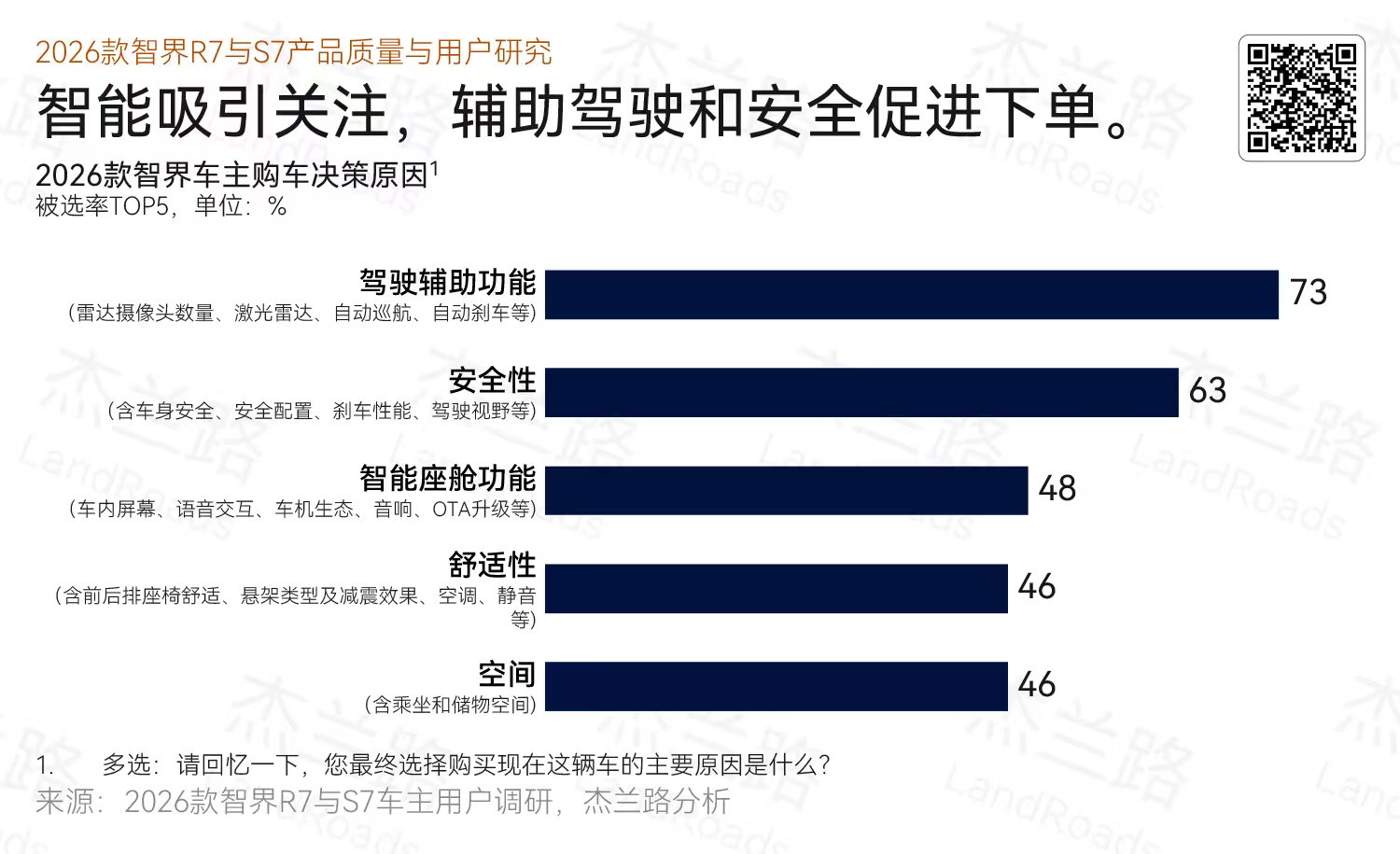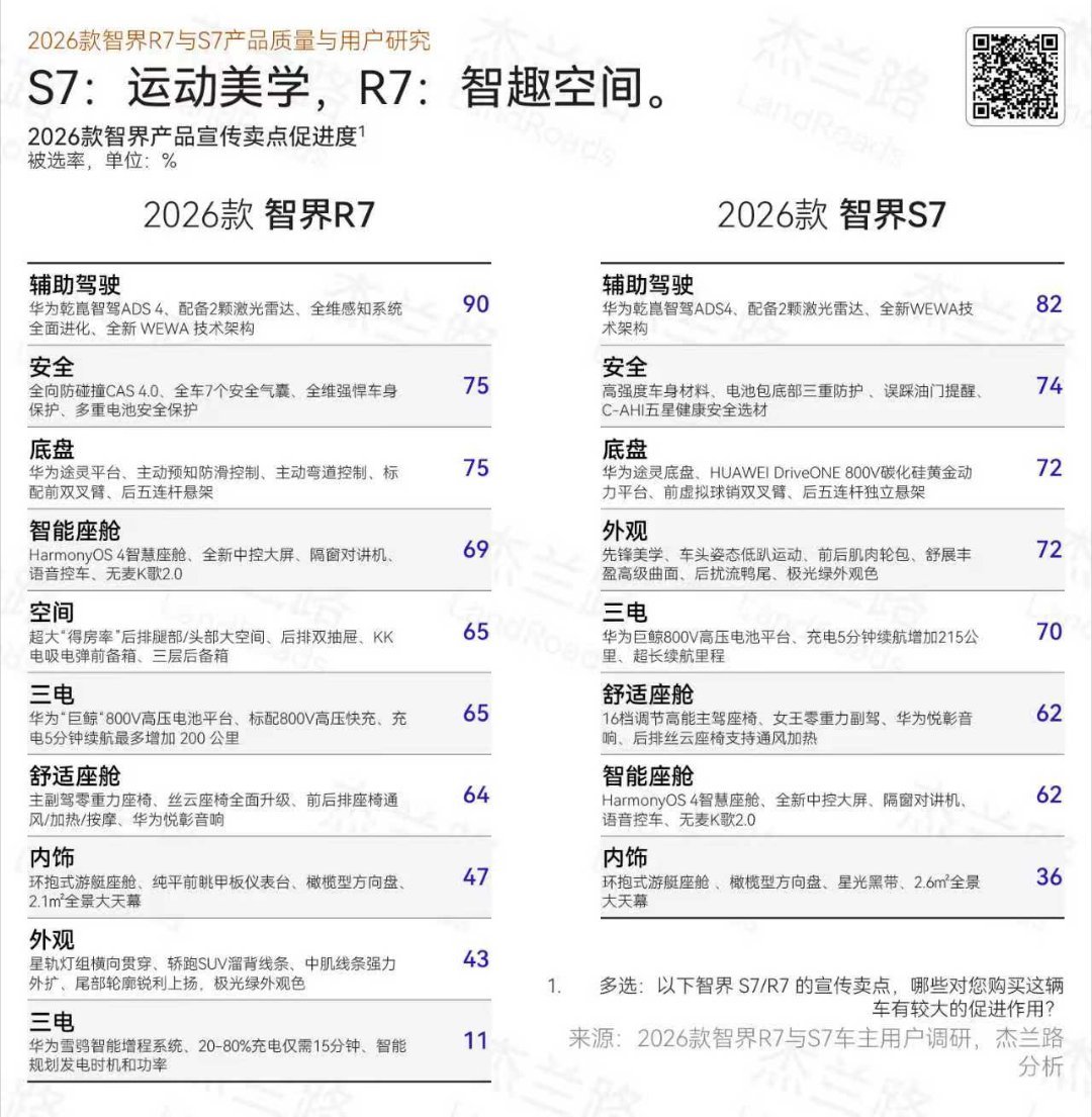 杰兰路发布智界用户满意度调研报告,数据显示,智界开启2.0阶段,华为深度赋能下,产品质量净满意度得到明显提升。智界也越来越成为年轻用户的喜好和选择。今天早上老婆刚跟我说他们单位又新出现了一辆R7,是年轻小伙开的。智界再接再厉,产品力和服务,是最大的竞争力。口碑提升,成长速度会越来越快。💪年轻人重新将安全列为买车关键因素质量才是用户转介绍的最大底气