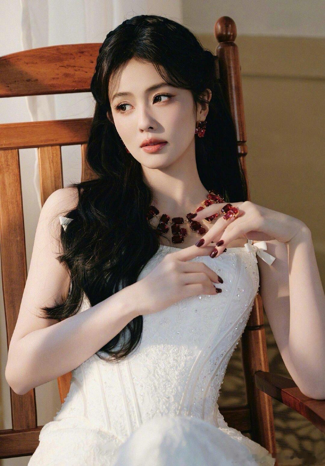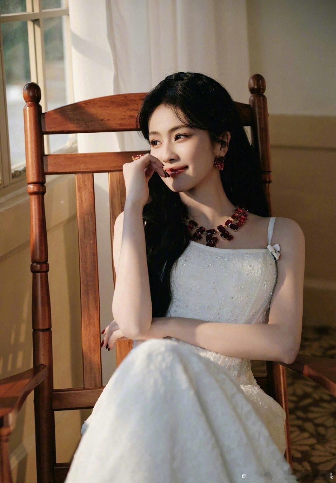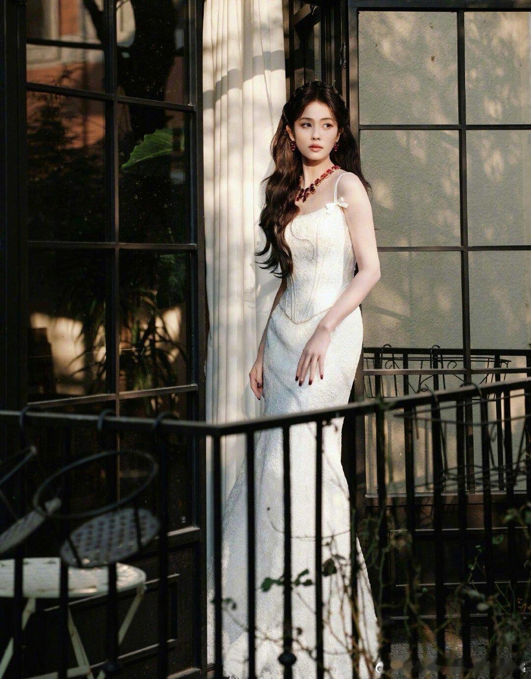 黑发如瀑,白色仙女裙宛若公主降临,今天的白鹿很美。