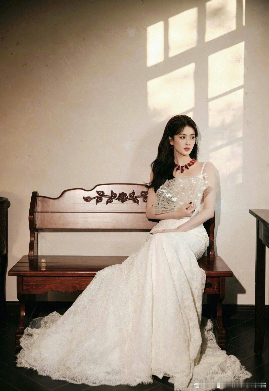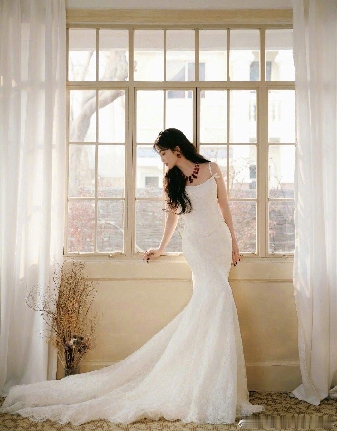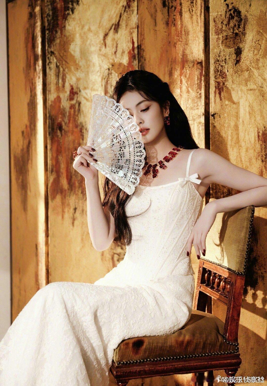 黑发如瀑,白色仙女裙宛若公主降临,今天的白鹿很美。