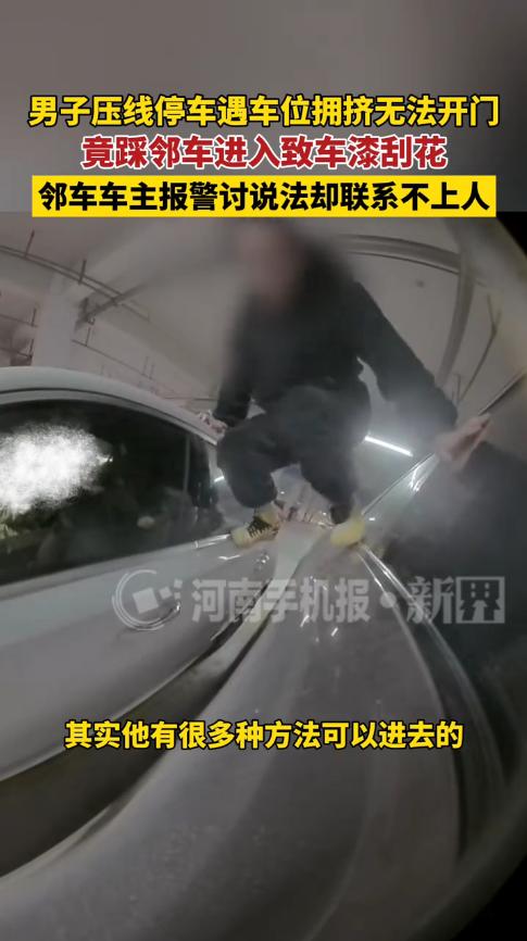 “冤不冤?”12月15日,浙江金华,一男子停车时,好不容易找到一个车位,可旁边的车主却压线停车!男子花了好大一番功夫才停进去,令他没想到的是,回来开车时车漆却被刮了,查看监控发现是旁边车主干的。网友:太没有素质了! 现在人们的生活条件好了,路上的汽车变得越来越多,但停车反而成了难题,再加上有的停车位相对较小,一旦有人没有停好,就会导致周围的人难以入库。 当天晚上,胡先生开车来到商场,好不容易找到个车位,他急忙把车开了过去,可是在看到车位的情况后却犯了难。 因为旁边的车主把车停在了白线上,再加上车位本身就比较小,胡先生尝试多次后,这才艰难的把车停了进去,随后他便下车离开了。 过了一会儿,胡先生开车离开,却发现车上有好几个脚印,车漆也被刮坏了,他急忙查看了行车记录仪,发现旁边的车主进车时,直接踩在车上开车门想要钻进去,可尝试一番后却进不去,最后还是从副驾驶爬进去的! 可是明明是对方没有停好车,自己的车却无辜遭了殃,这令他非常生气,只不过报警后并没有找到那名车主。 网友看后表示,都是车技差惹的祸,要是把车停好了,既不会给别人带来麻烦,也不会让自己难堪,这种司机还是多练练车技再上路吧! 信息来源:《男子压线停车遇车位拥挤无法开门,竟踩邻车进入致车漆刮花,邻车车主报警讨说法却联系不上人。》新界视频