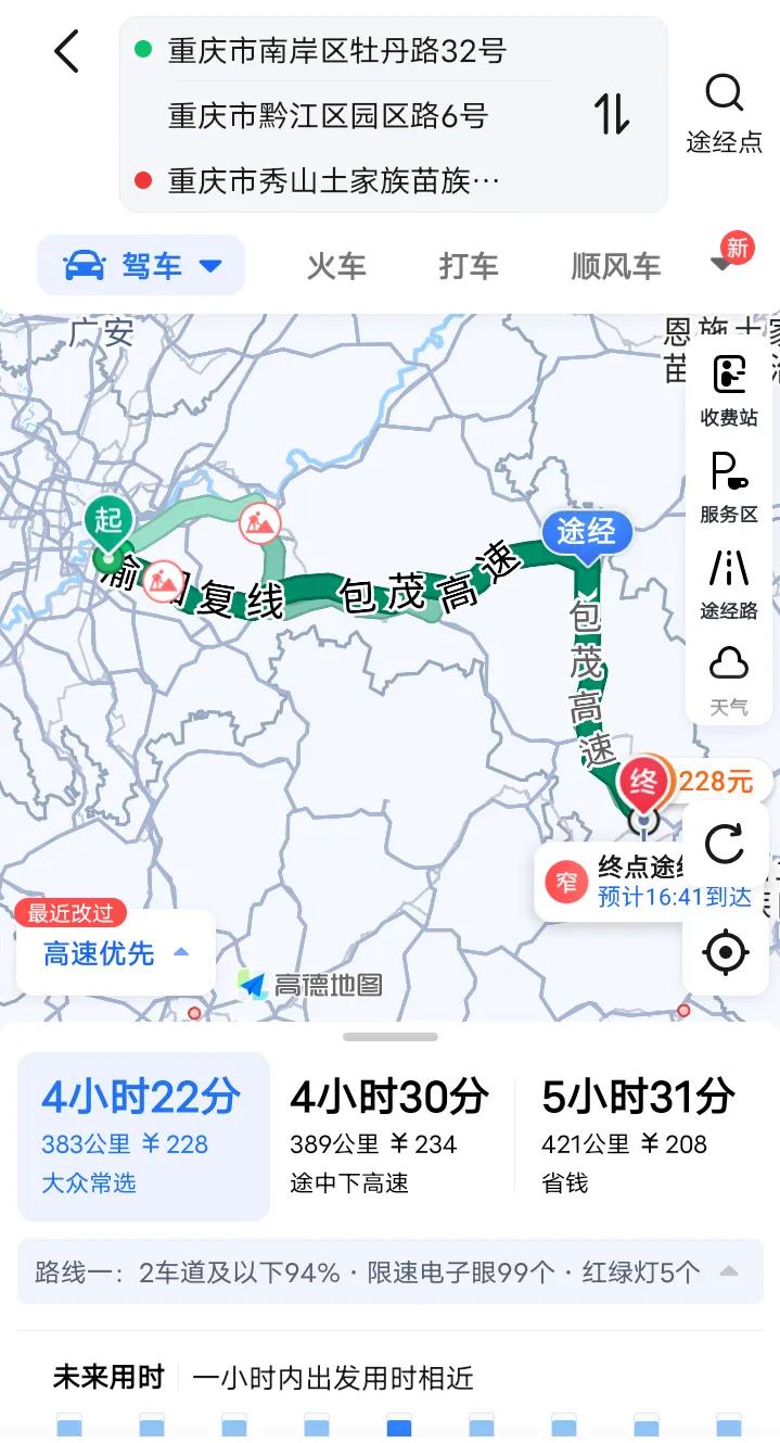 渝湘高速复线已于今天(12月18日)10点全线建成通车,小客车收费标准约0.84