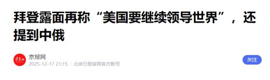 拜登消失7个月后开口,第一个就点了中国的名,称有件事他很担忧。 美国政坛这出戏看得人眼花缭乱,先是拜登在公众视野里低调了大半年,好不容易出来发表公开讲话,一开口就没绕开中国,说有件事让他特别担忧。 紧接着那边特朗普又在喊着“美国别再当世界警察”,要把精力收回到国内。这俩前总统和准总统的表态一出来,不光美国人自己议论纷纷,全世界都在猜美国接下来要怎么走。 直到2025年年中,他才借着一场纪念基础设施法案实施的活动重新站到台前,中国成了他绕不开的话题。这话听着有点绕,但掰开了说就清楚了,拜登现在提中国,根本不是临时起意,全是现实逼出来的。 拜登任上推了一万多亿美元的基础设施法案,本想靠这个拉动就业、激活制造业,可效果一直不温不火。2025年的经济数据摆在那儿,制造业就业岗位前九个月就丢了4.9万个,中西部铁锈带的工厂还是在关门,之前炒作的芯片工厂建厂热潮,到现在不少工地还停着塔吊。 反观中国,2025年的贸易顺差创纪录地冲到1万亿美元,就算美国加了那么高的关税,中国商品换个路子通过墨西哥、越南还是照样进入美国市场。 这种对比让拜登没法不焦虑,他口中“担忧的事”,说白了就是美国在和中国的经济竞争里,没占到便宜反而有点被动。美国的全球战略里,中国早就是绕不开的核心。 拜登政府一直把亚太当成安全战略重点,想拉着盟友一起遏制中国影响力,可实际情况是中国在中东、拉美这些地方的合作越来越多。就像美国想让拉美国家在中美之间选边站,结果人家该和中国做贸易还是照样做。 就算拜登要卸任了,民主党还得为下一次选举铺路,把中国当成“话题焦点”,既能转移国内对经济、民生问题的不满,又能凝聚选民共识。这种操作在美国政坛早就不是新鲜事,不管是民主党还是共和党,遇到麻烦就提中国,已经成了一种惯性。 拜登消失七个月后一开口就点中国名,看似突然,其实全是算计,既有对现实经济竞争的焦虑,也有维持全球战略的考量,还有国内政治的需要。 2025年特朗普政府发布的国家安全战略报告里写得很明白,要把重点从全球事务拉回到美国本土和周边,减少在非核心利益地区的投入,说白了就是不想再像以前那样到处当“世界警察”,把钱和精力都花在国内。 最直接的就是能省不少钱。以前美国在海外驻军、搞援助、参与地区冲突,花的都是真金白银。特朗普上台后,要求欧洲盟友多承担军费,减少在中东的军事投入,这些措施确实能让美国政府的开支压力小一点。 把资源转向国内,理论上能帮着解决点民生问题,比如他一直喊的“制造业回流”,就是想让工厂重新开起来,让蓝领工人有活干。还有边境安全、打击贩毒这些国内问题,以前总被国际事务挤占资源,现在把重心转回来,确实能集中力量办点事。 美国的霸权从来不是靠自己单打独斗,而是靠一群盟友撑着。现在特朗普喊着“自己顾自己”,欧洲盟友第一个不乐意,跨大西洋关系已经出现了裂痕;日本、韩国也在犯嘀咕,担心美国哪天就不管他们的安全了。 2025年报告里还批评欧洲盟友承担责任不够,要求日韩大幅增加防卫费,这明摆着是要盟友“加钱”,只会让盟友越来越离心。以前美国靠领导力把盟友绑在一起,现在主动放弃领导权,盟友们肯定会各自找出路,等美国想再把大家聚起来的时候,就没那么容易了。 “放弃领导世界”,本质上是把国际规则的制定权让出去。以前美国说一不二,靠WTO、北约这些机制掌握话语权,现在特朗普蔑视多边主义,退出各种国际组织,不愿提供全球公共产品,等于把舞台让给了别人。 就像特朗普搞的关税战,本想打击中国,结果2025年美国贸易赤字反而扩大,中国顺差却破了纪录,这就是放弃全球经济领导力的代价——自己的规则没人遵守,反而被别人牵着鼻子走。 国内的问题也没那么容易解决。特朗普喊着“制造业回流”,可实际情况是2025年美国制造业产量只增长1.6%,还没恢复到2023年的水平,工厂支出连续7个月下滑。 拜登开口提中国,特朗普喊着“放弃领导世界”,本质上都是美国在给自己的霸权找出路。拜登想靠维持全球领导地位,继续压制中国、稳住盟友。 特朗普想靠战略收缩,先把国内问题解决好,再图后事。可这两条路都不好走,前者要花钱花精力,美国已经有点力不从心;后者看似省力,却会丢了霸权的根基。 现在的美国就像站在十字路口,既舍不得全球领导权带来的好处,又扛不住维持霸权的成本。拜登的担忧和特朗普的主张,不过是这种矛盾的两种表现。 但不管怎么选,有一点是肯定的:靠打压别人、收缩自保都不是长久之计,毕竟现在的世界早不是美国一家说了算的时代了。美国要是真想解决问题,与其盯着中国、算计盟友,不如先把自己国内的工厂开起来,把农民的饭碗稳住,这才是最实在的事。
