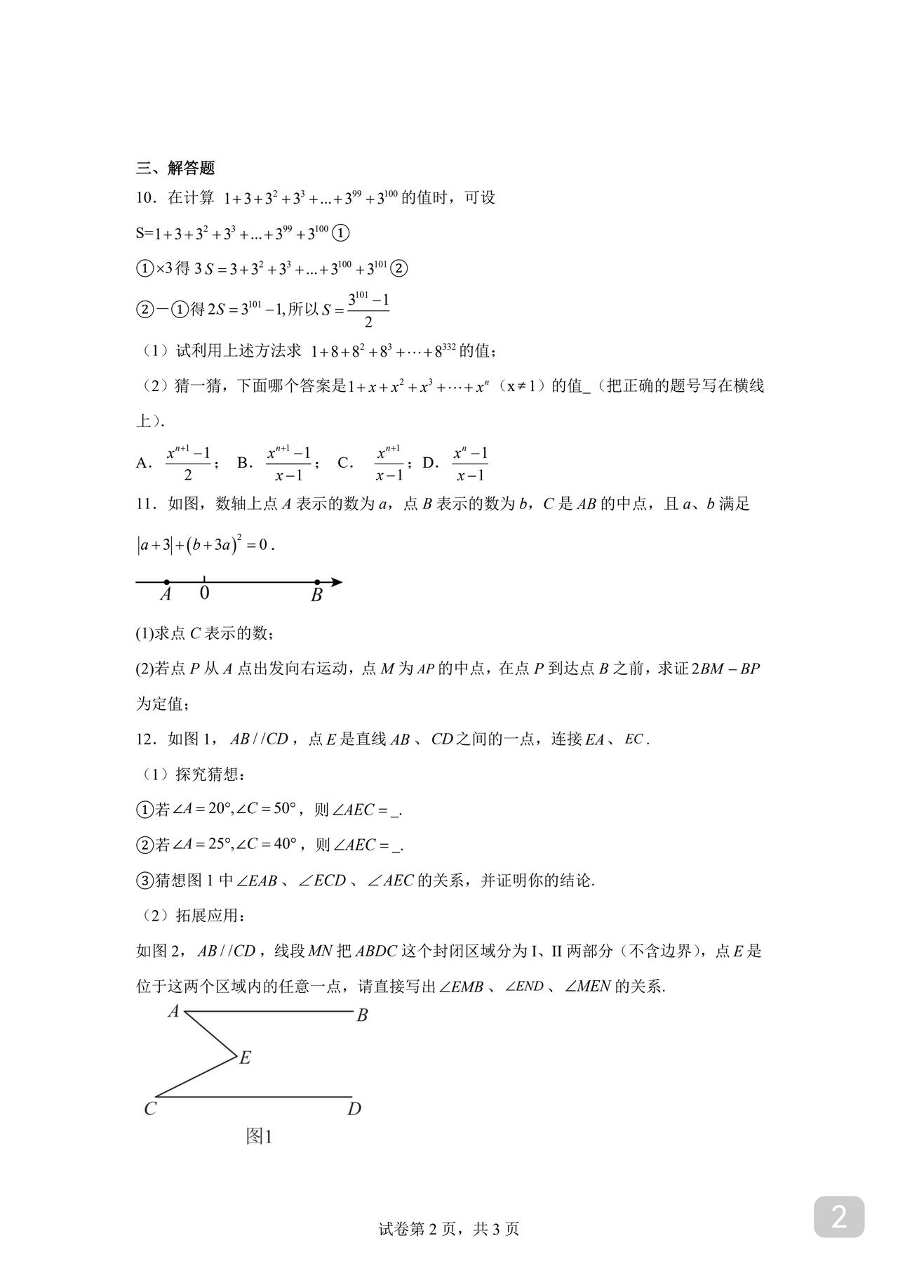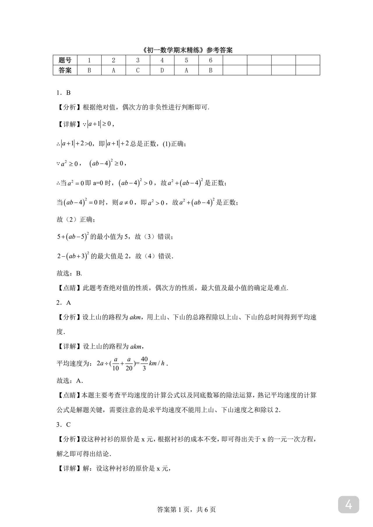 初一数学期末精练题 如果平时得分只有8成 就多练这种题 练出感觉了 期末就是满分或无限接近满分 信我错不了