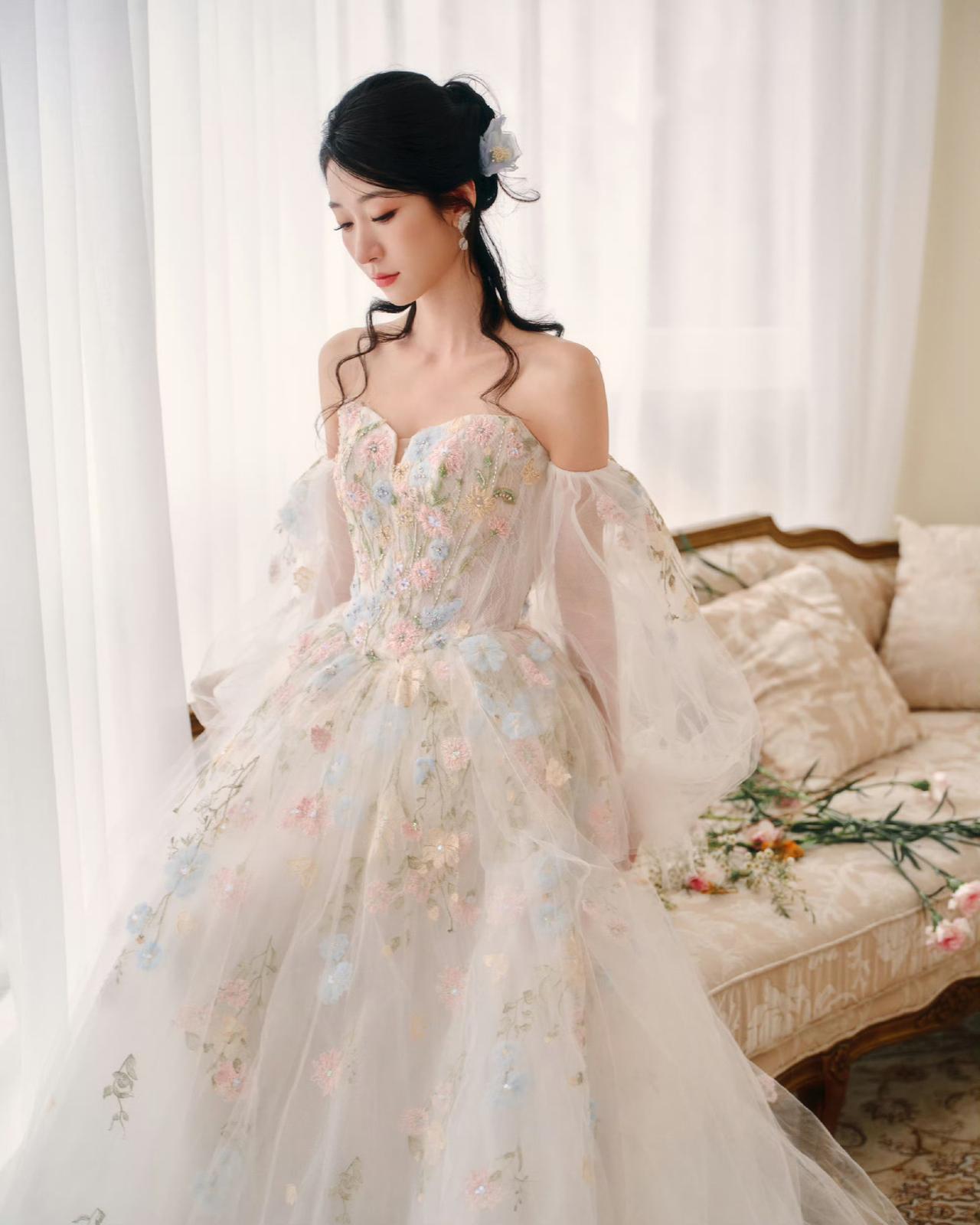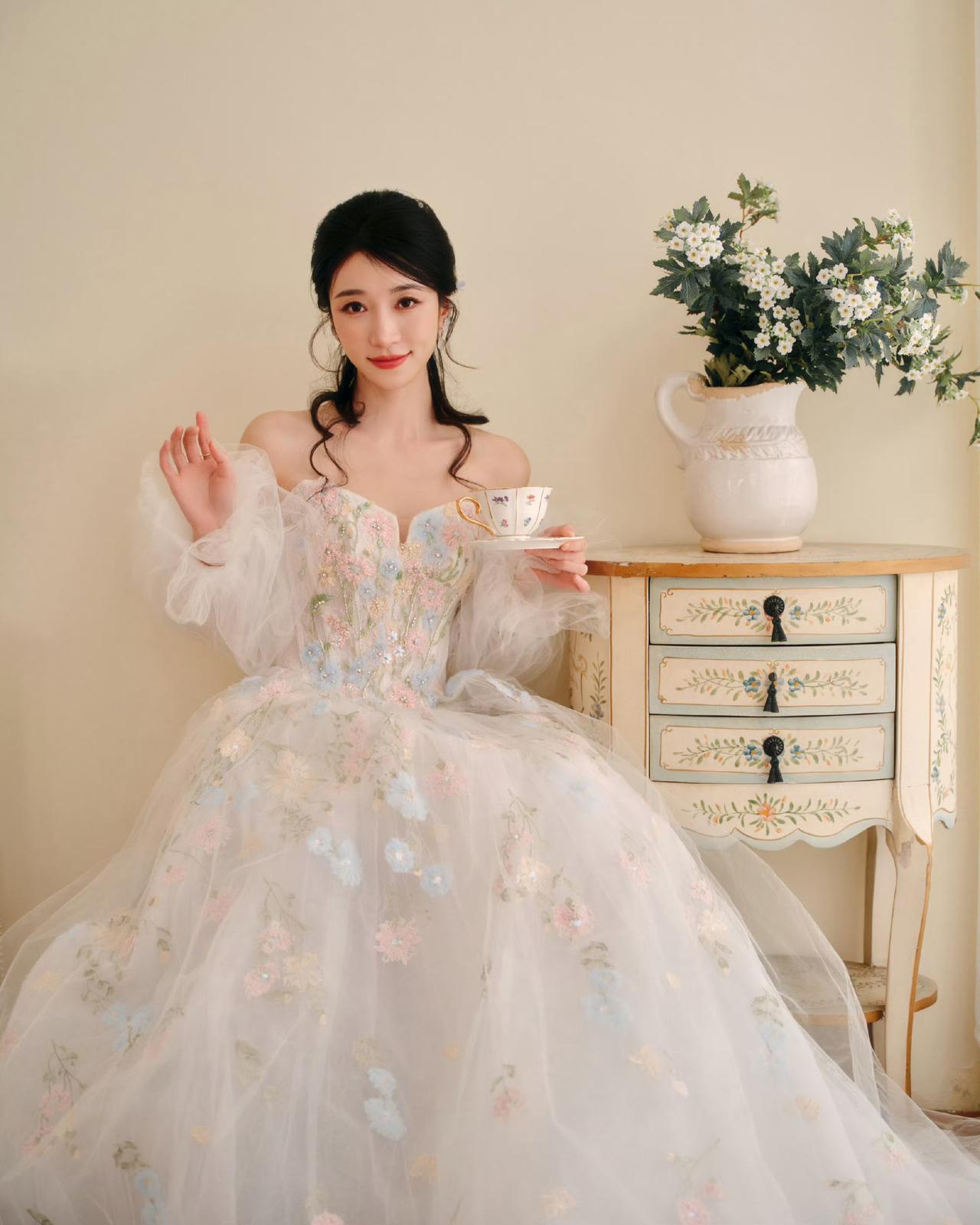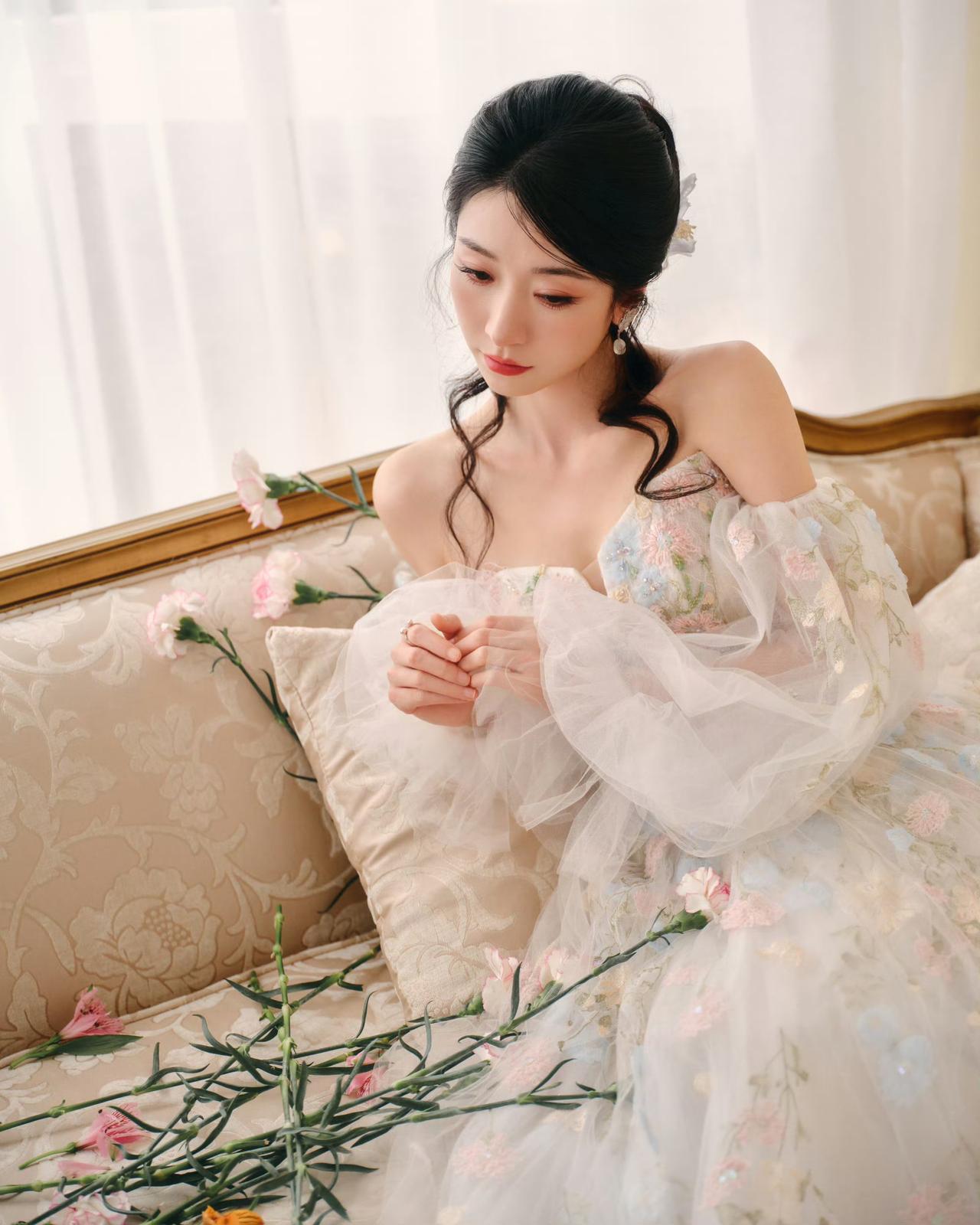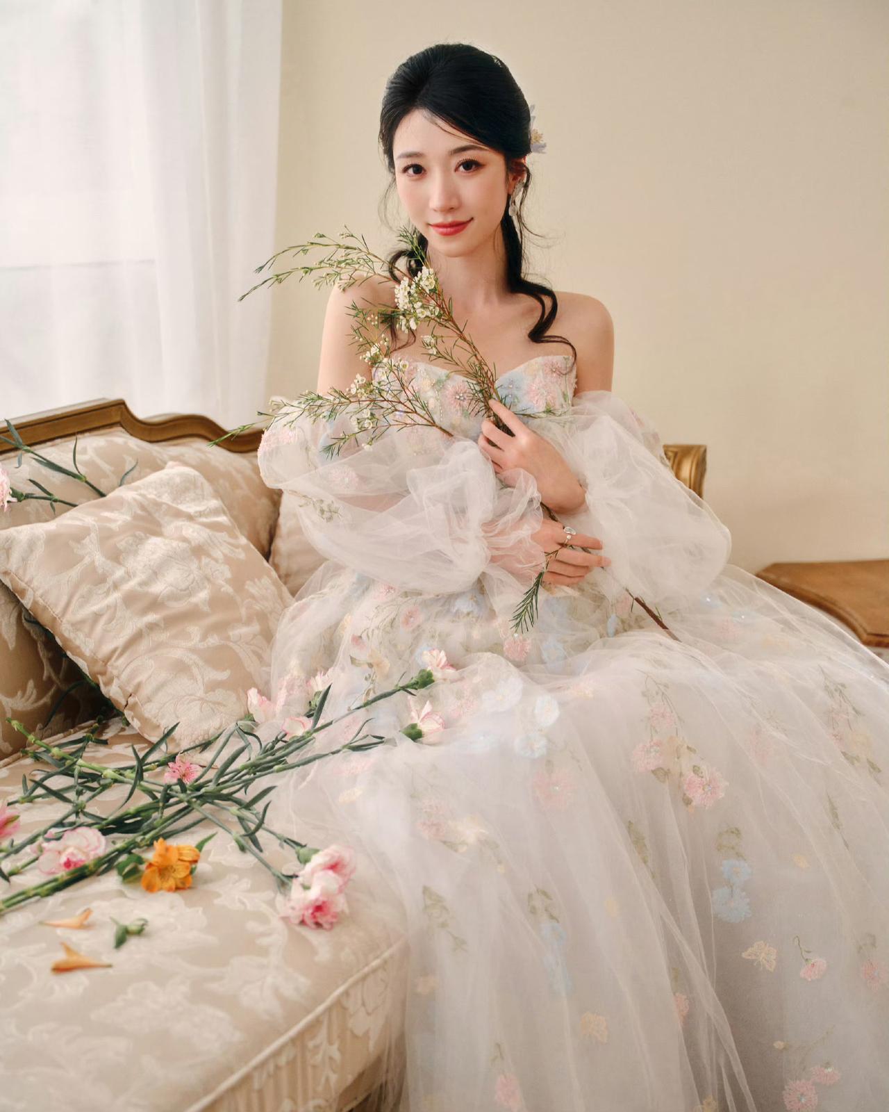 王格格搜狐时尚盛典造型出图。 她穿了一袭蓬蓬的繁花仙女裙。 轻纱材质,飘逸柔美。 但这条裙子和她成熟的脸有些不太搭。 她的长相偏成熟那种,但这条裙子是有点小仙女的风格。 在短剧届她可是很火,大家都有看过她哪些短剧呢?