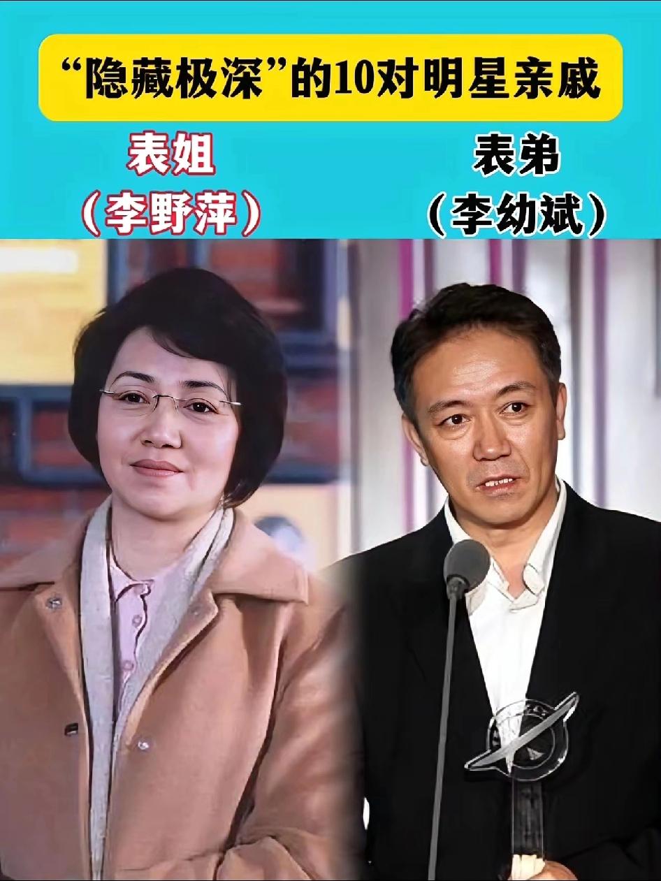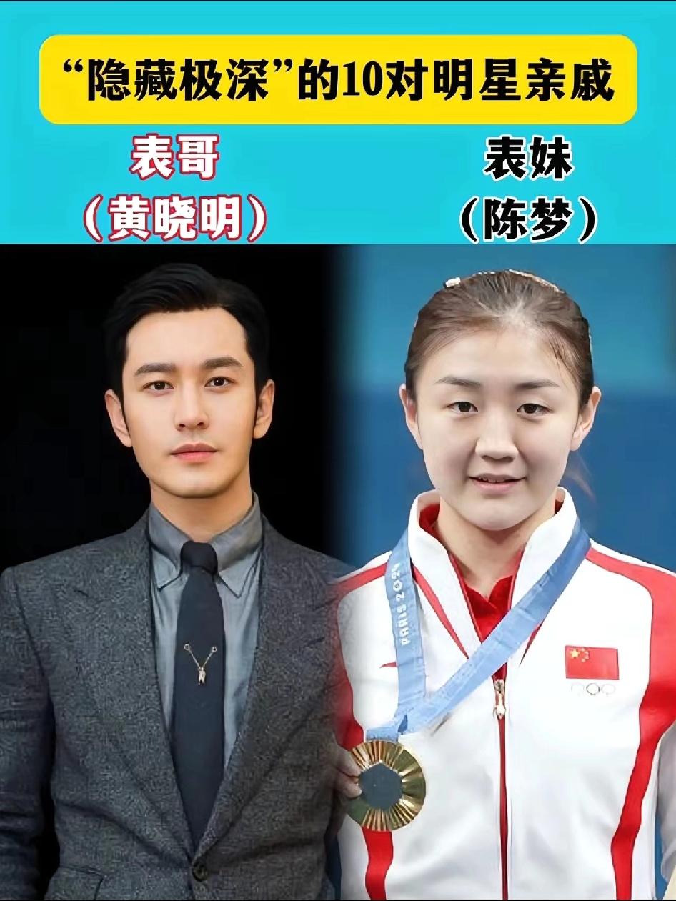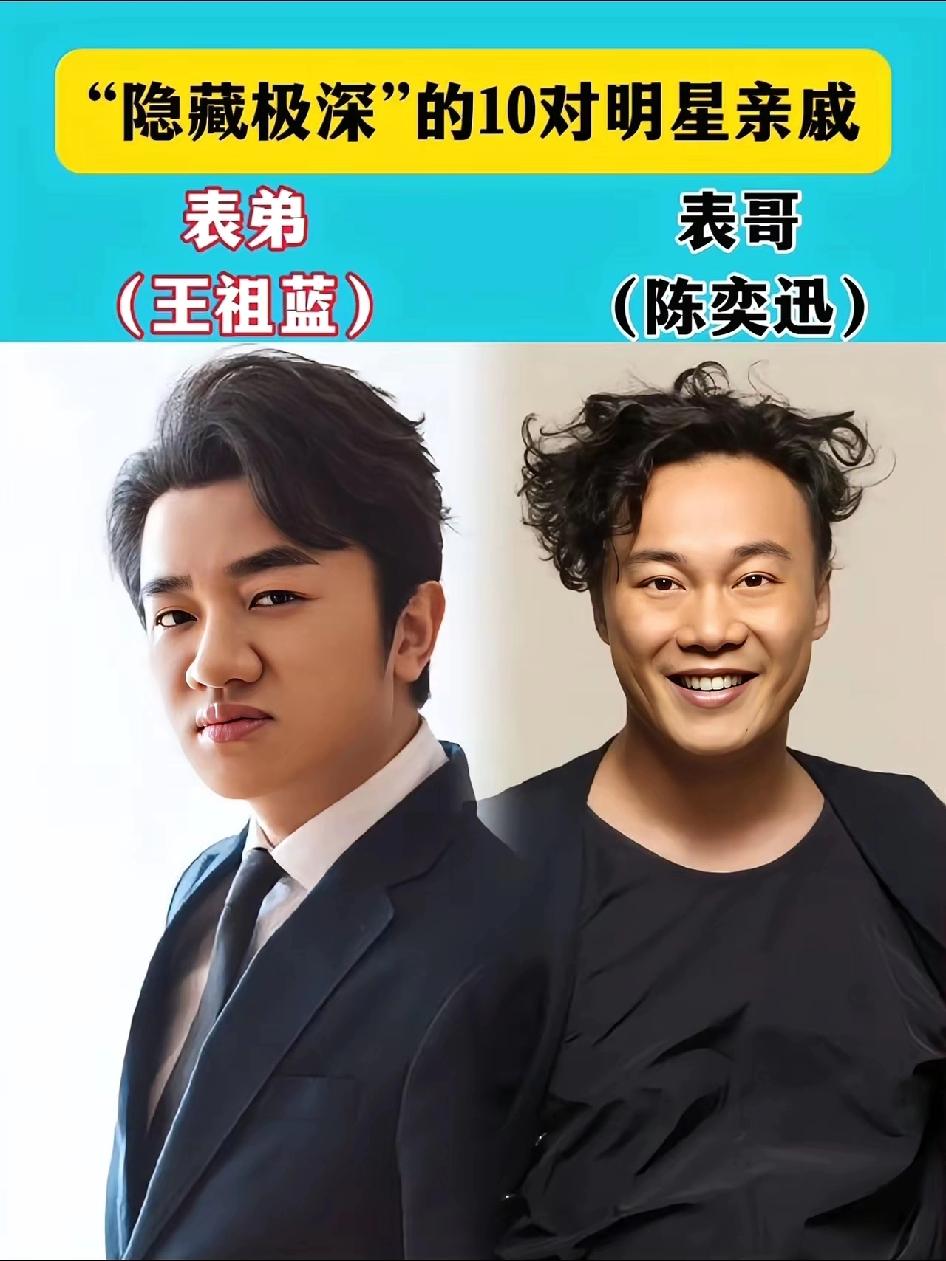 亲戚套着亲戚 娱乐圈的人情世故也不少 赌王何鸿燊居然是功夫巨星李小龙的表哥,也不知道他们的这张关系到底是不是真的。 王祖蓝是陈奕迅的表弟,仔细看着她们两个人的模样,不得不说,这两个人的长相确实有一丝丝的相似。 奥运冠军陈梦的表哥是黄晓明,这个关系好应该是真的,因为之前就有报道过黄晓明和陈梦在一起吃饭,而且陈梦也承认了她和黄晓明自己的关系。 陈赫和是陈飞宇的表哥,董洁是宋祖儿的表姐,蒋雯丽是马思纯的小姨,倪大红是倪萍的表姐夫娱乐圈里的亲戚关系还真的是复杂。