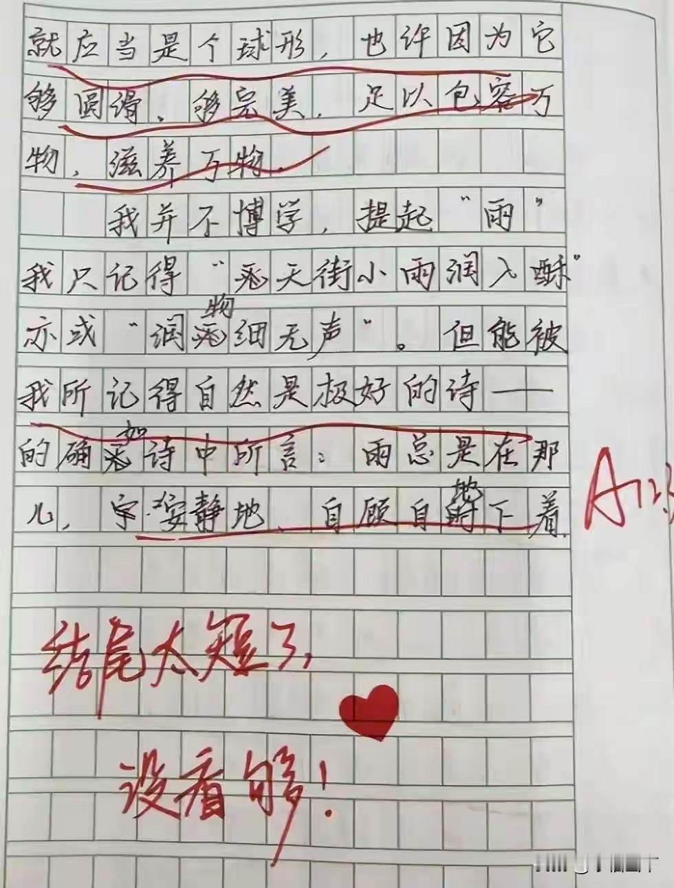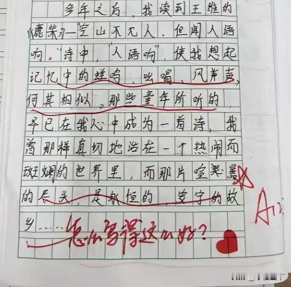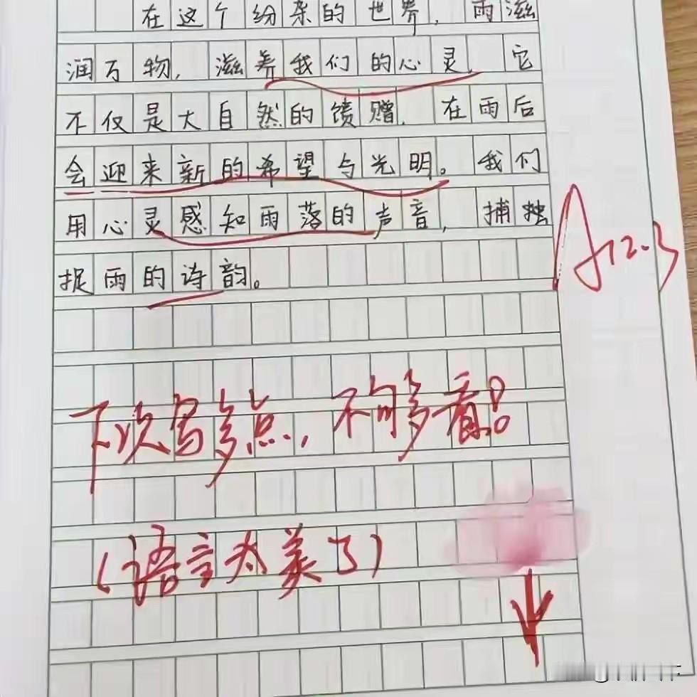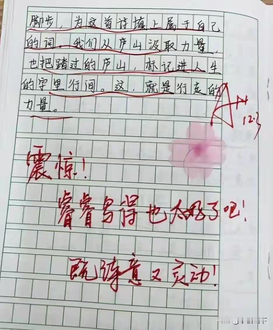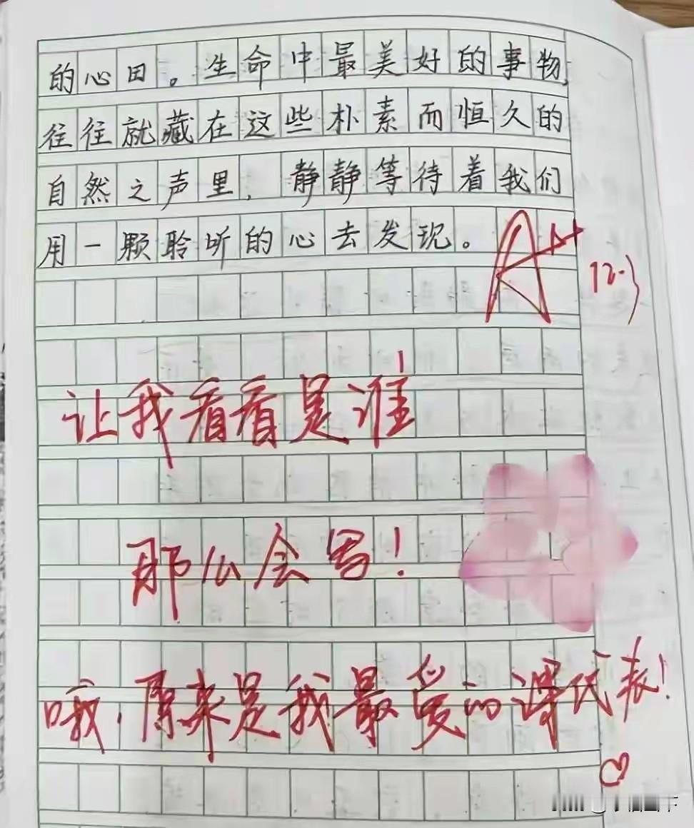 咱咋就没遇到这样的好老师呢?![送心] 女老师“一句话评语”走红,家长:给我这样的老师,我愿意去拉磨! 一名好老师,可以拯救一个孩子的学生时代。一名不负责任的老师,也可以轻易摧毁一个孩子的所有学习兴趣。 老师和学生之间的关系很微妙,学生不爱学习,老师的任务,是需要他们学习。把一件不被喜欢的事情,强加于人的话,总是需要一些力气和手段。 而这位女老师,偏偏用最温柔的“力气”,撬开了孩子们的心门。她笔下没有“再接再厉”的敷衍,没有“字迹潦草”的苛责,只有一句句带着温度的话:“你的作业本像你的笑容,干净又明亮”“错题是成长的小脚印,老师陪你一起数”“课堂上举着手的你,眼里有小星星”。 这些评语被家长随手发上网,瞬间引爆评论区。有人说“要是我小时候有这样的老师,数学也不至于考30分”,有人调侃“老师缺跟班吗?我能帮你批作业”,更有家长喊出“给我这样的老师,我愿意去拉磨”的心声。 说到底,家长们追捧的哪里是一句话?是被看见的尊重,是被呵护的童心。多少孩子因为一句“你真笨”陷入自卑,多少学生因为老师的冷眼放弃努力。教育从来不是冷冰冰的灌输,而是热乎乎的共鸣。 这位女老师的智慧,就在于她懂:孩子需要的不是批评家,而是点灯人。一句鼓励的话,能照亮孩子整个求学路。 网友们吵翻了:有人说这是老师的分内之事,有人夸这是教育的天花板。你家孩子遇到过这样的宝藏老师吗?评论区晒一晒,让大家羡慕羡慕!