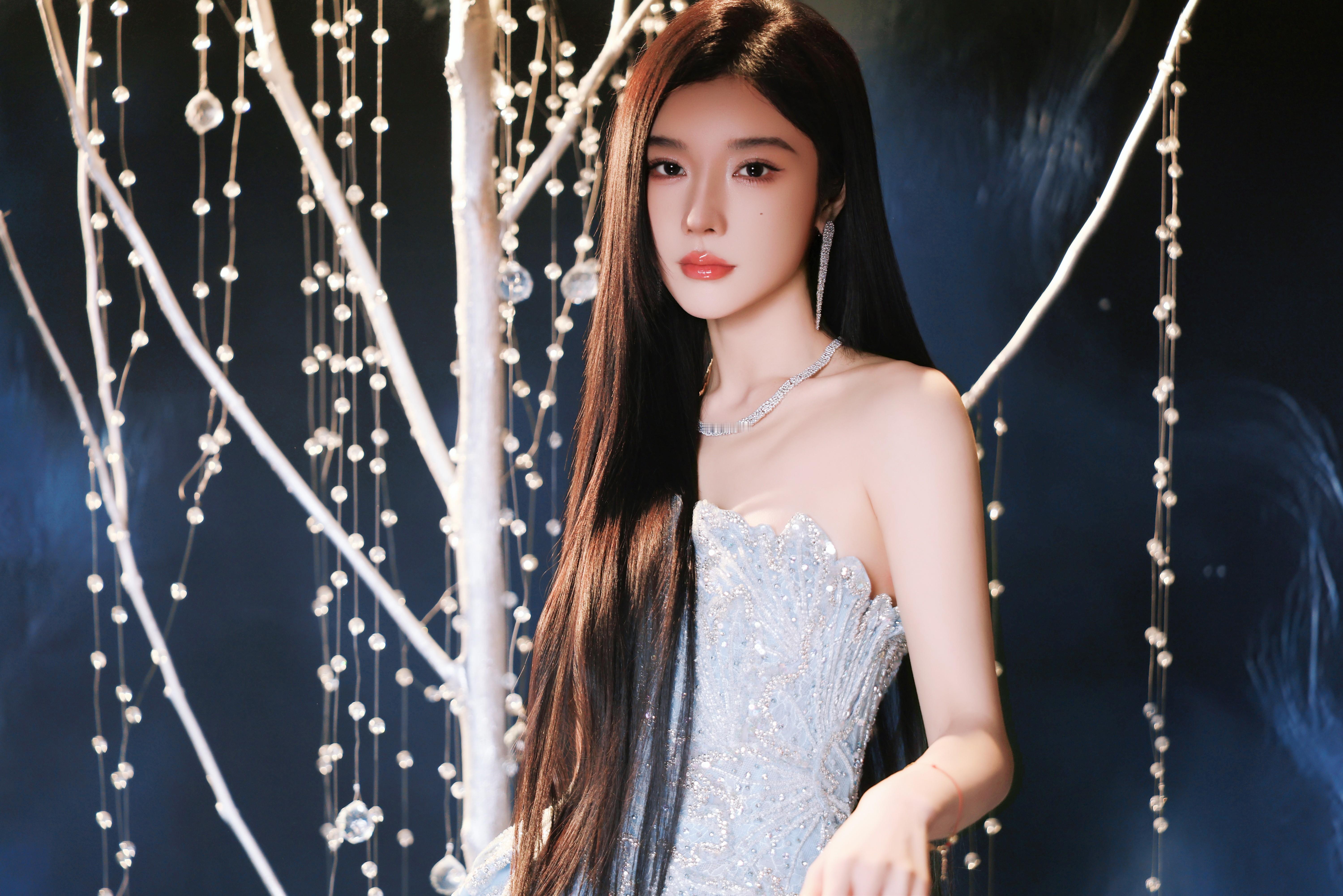 彭小苒丨搜狐时尚盛典彭小苒身挂脖透视长裙亮相红毯,将深V领口缝改为小V领,兼顾优