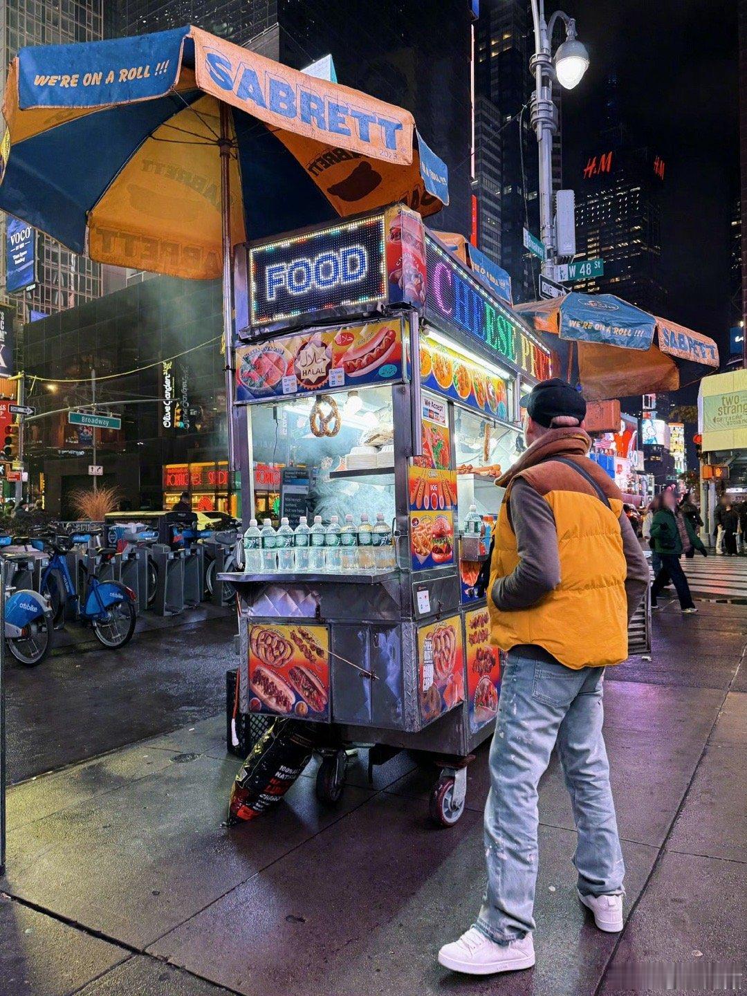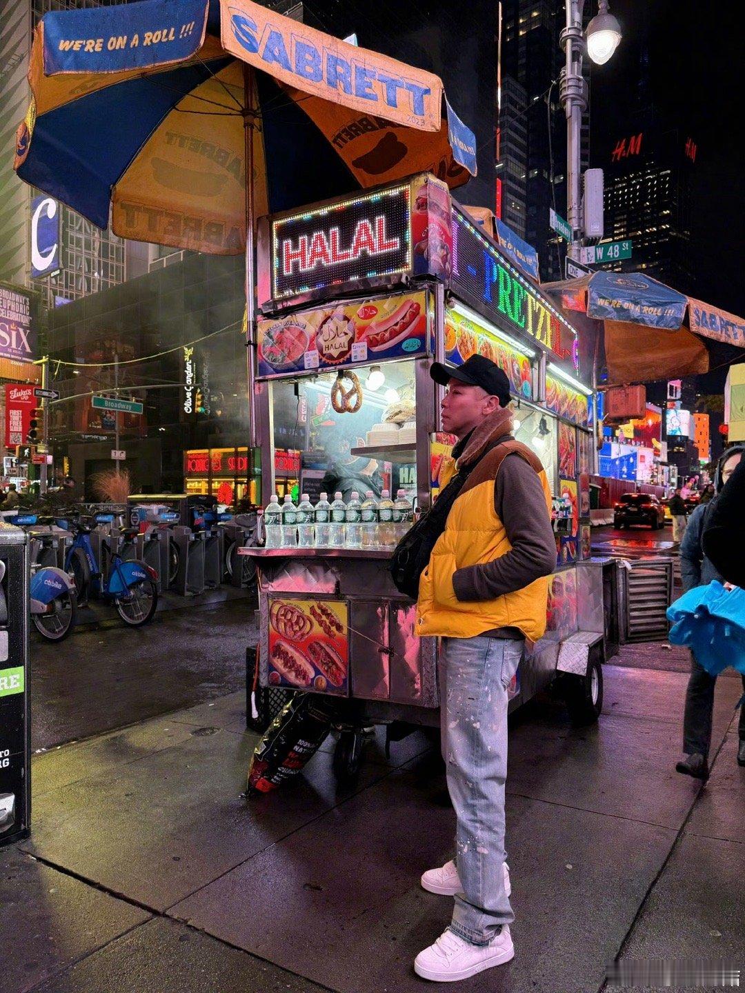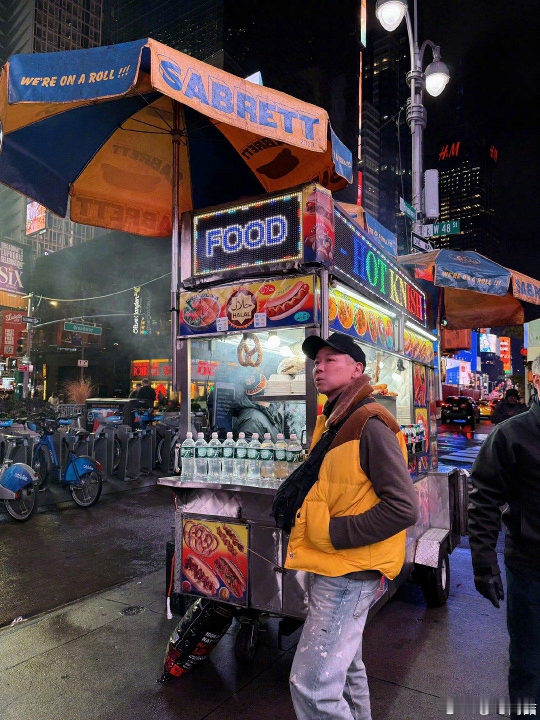 陶喆穿成了美式热狗 美式boy陶喆的街头随拍太有梗!小黄羽绒马甲一穿,和手里的美式热狗🌭完美呼应,大长腿一伸,这“人型热狗”的既视感拉满!