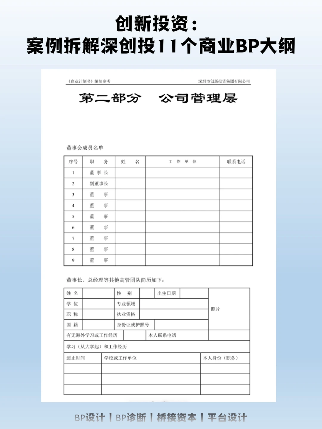 ——姓名、性别、年龄、籍贯,学历/学位、毕业院校,行业从业年限,主要经历和经营业绩。