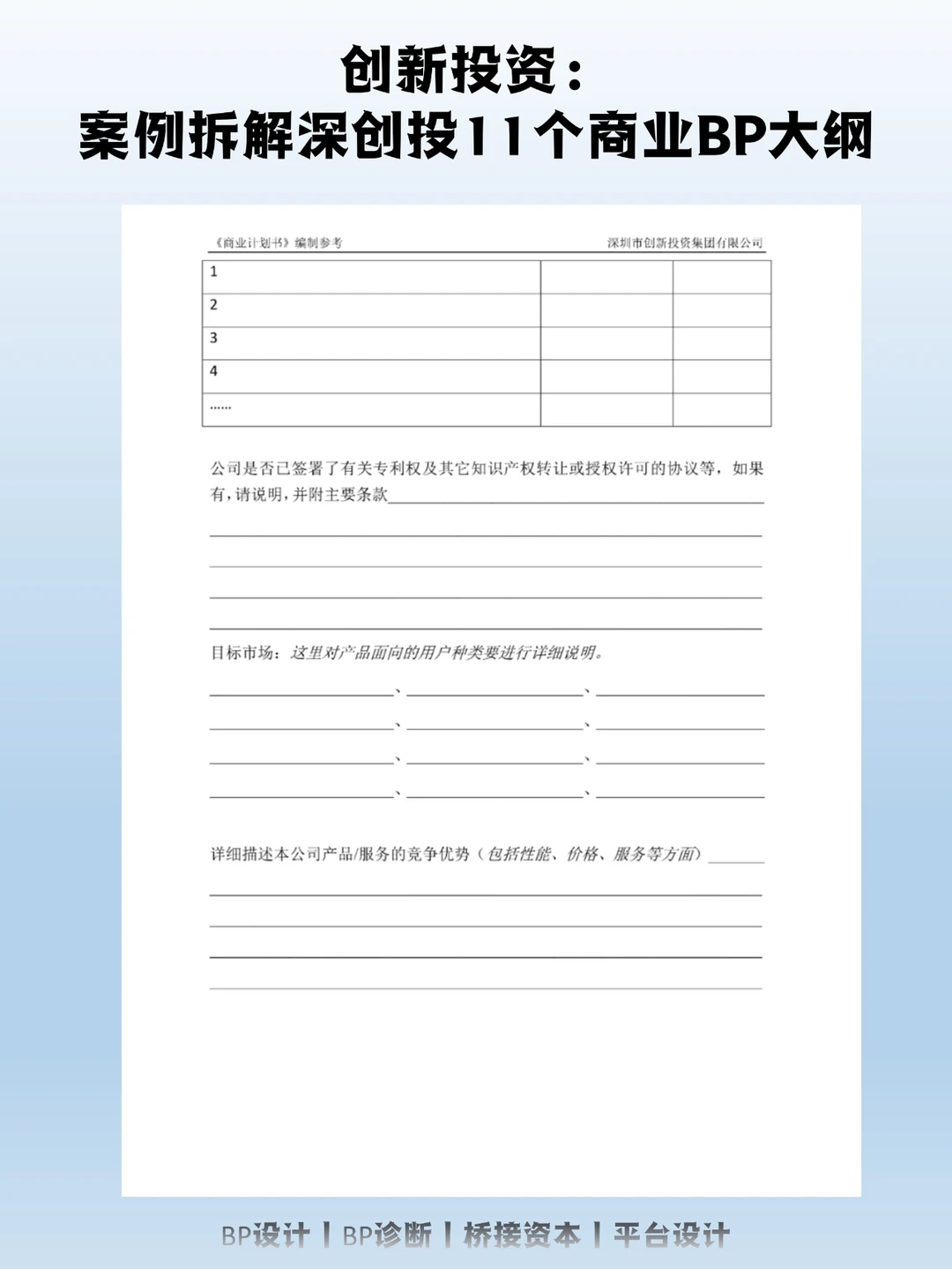 ——产品/服务介绍,产品技术水平,产品的新颖性、先进性和独特性,产品的竞争优势。