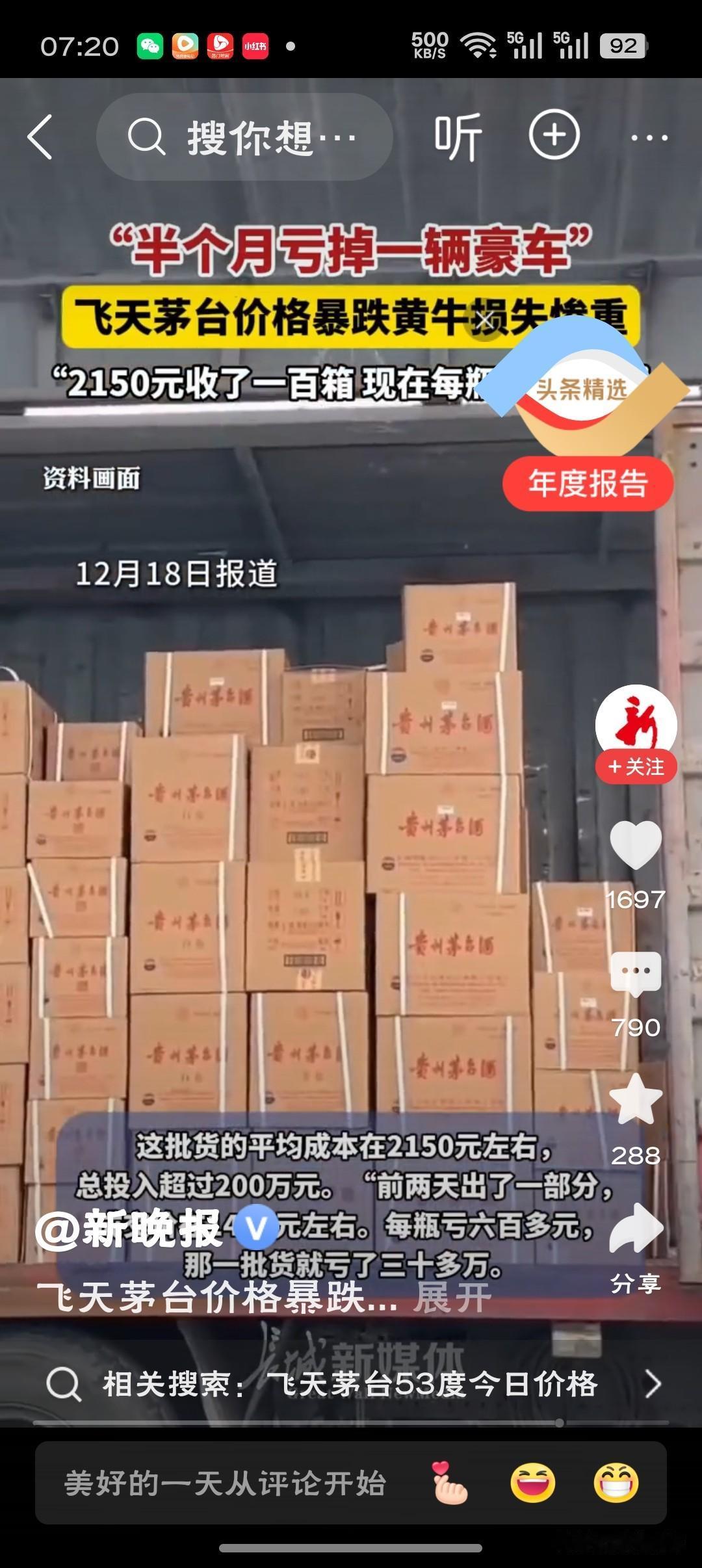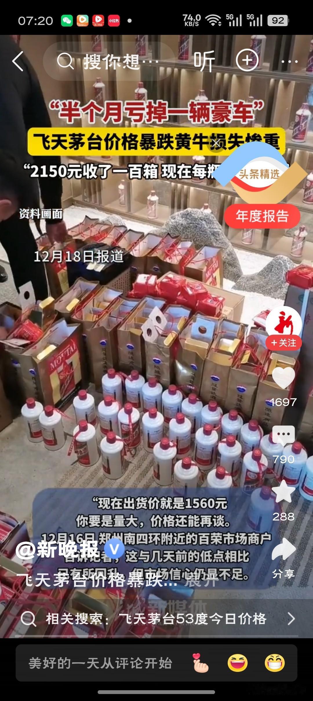 飞天茅台价格暴跌黄牛损失惨重酒本无价,人心有秤——当狂热退潮,方见价值本相。