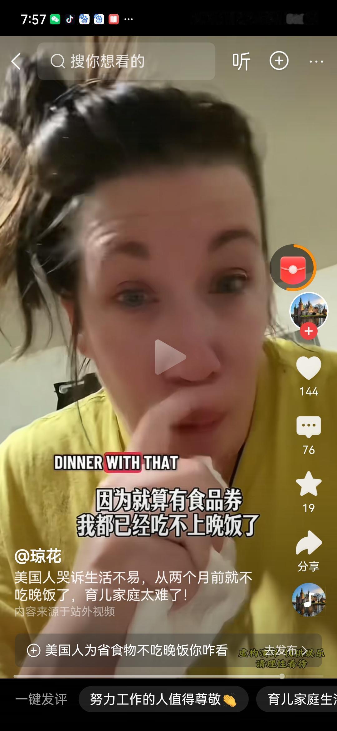 “我几乎每晚都不吃晚饭,只有这样,第二天中午才有饭吃。”一位美国女士哭诉道。她和男朋友都有工作,可由于孩子的托管费用太高,为了能有时间去接孩子,她只能找一份低薪工作。这使得即便有政府发放的食品券,他们两人也拮据到连晚餐的钱都拿不出来。 很难想象,如果没有食品券,他们的生活会陷入怎样的困境。