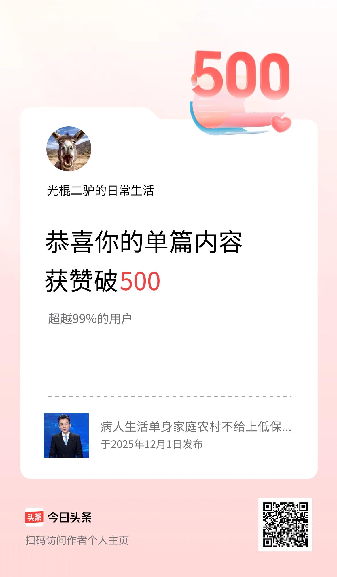 单篇内容获赞量破500啦!