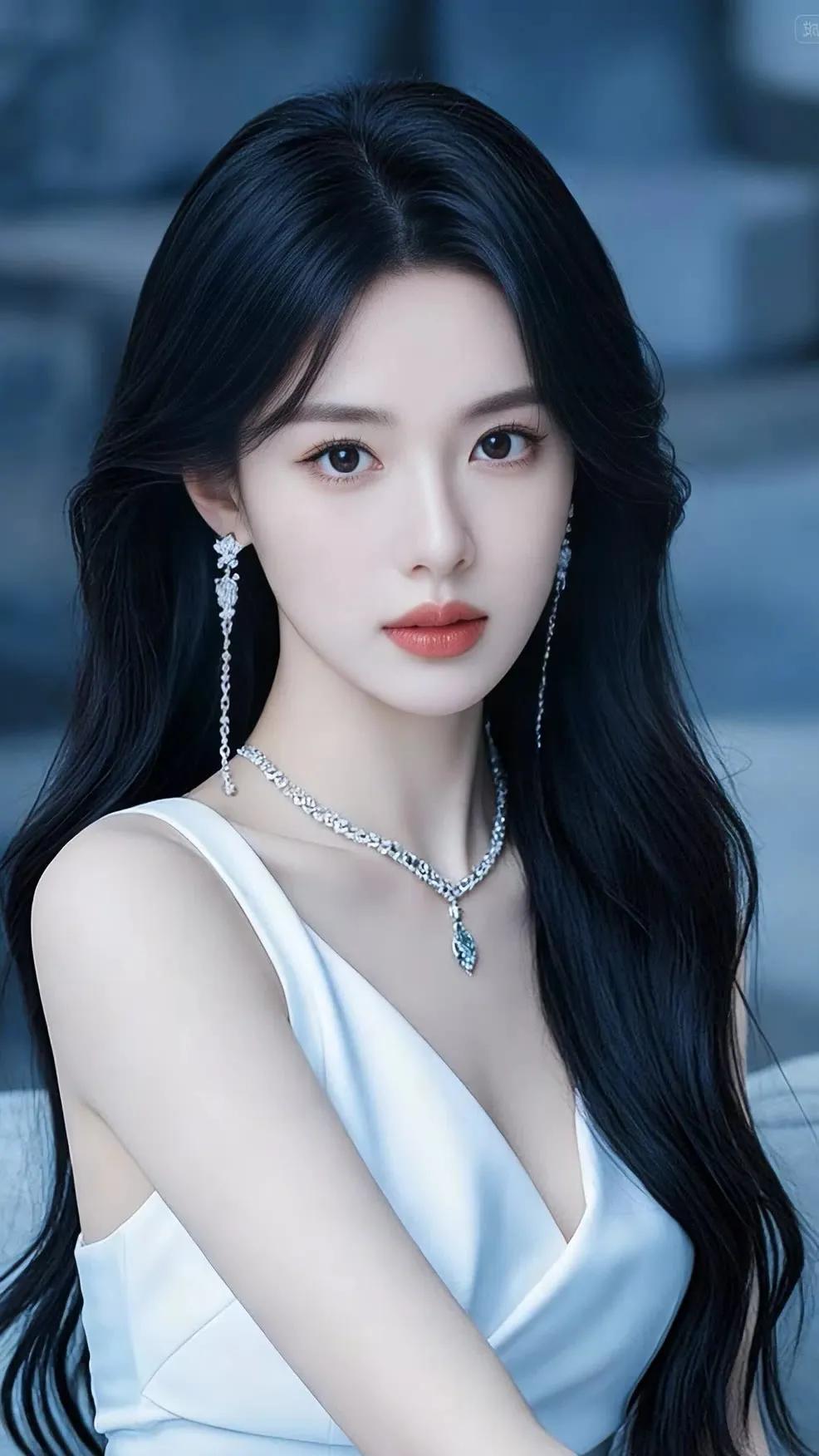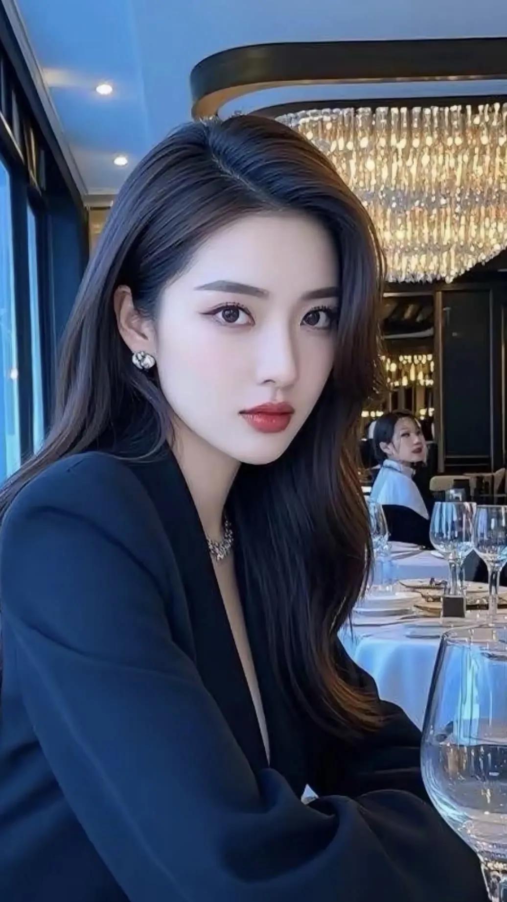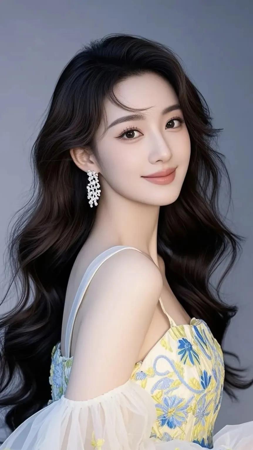 甜美笑容,红唇诱惑,黑发飘逸,气质动人