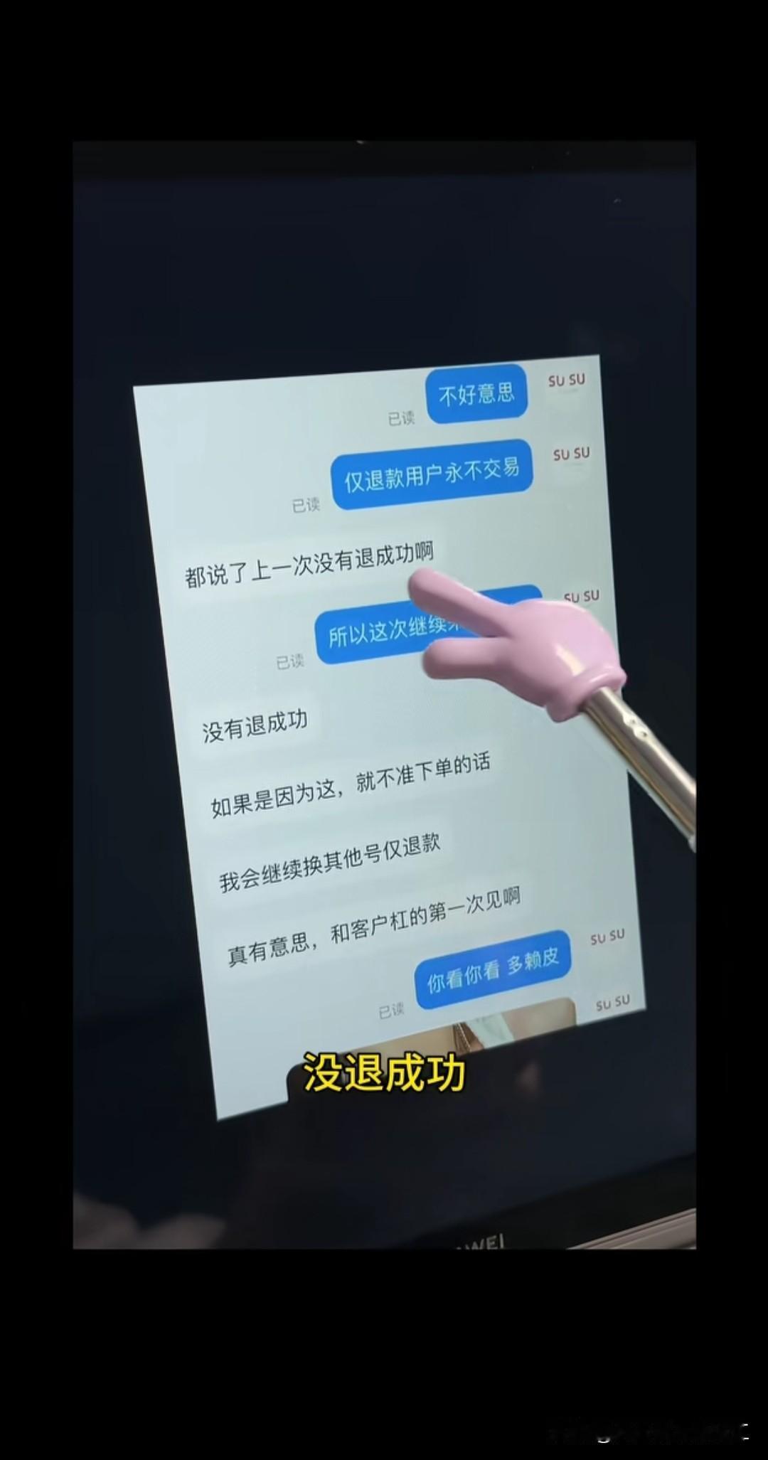 网友,为什么限购? 客服,因为你之前仅退款了 网友,那你们不是没同意,没退成功 客服,仅退款的都被我拉黑了 网友,解除下,我要买这个 客服,拉黑客户永不交易 网友,都说了不是没成功,如果这样,下次换号来仅退款……