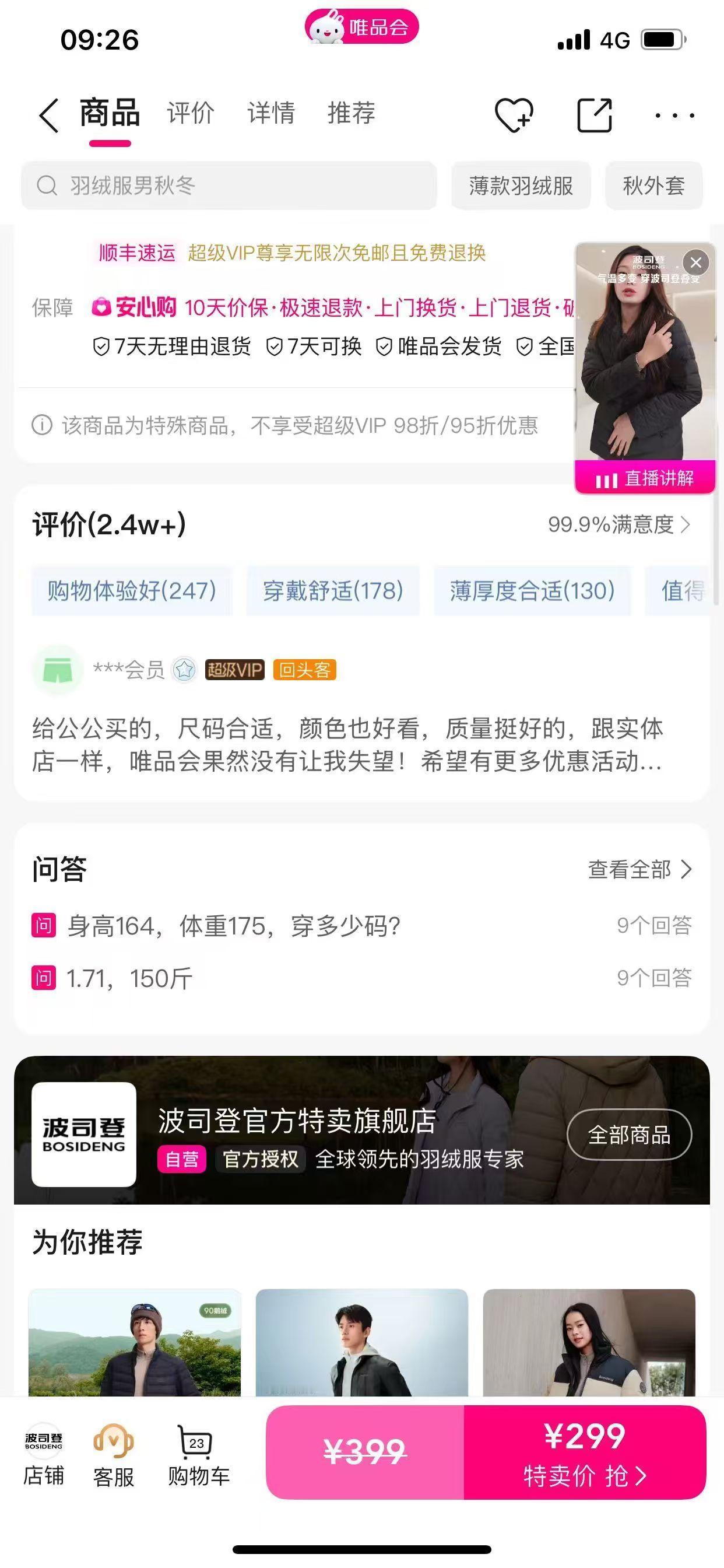 高校399、899的羽绒服全部卖断货,说是波司登生产的。 胖东来开卖羽绒服,早上8点就开始排起长队。 唯品会299的波司登卖爆,买家秀都是两万多条,满意度极高。 这说明,大家买羽绒服的心态变了,不再盲目追求贵,也对低价有了新的定义,既追求品牌品质又追求性价比的消费方式成为了新的潮流!