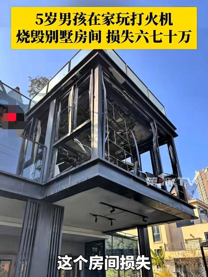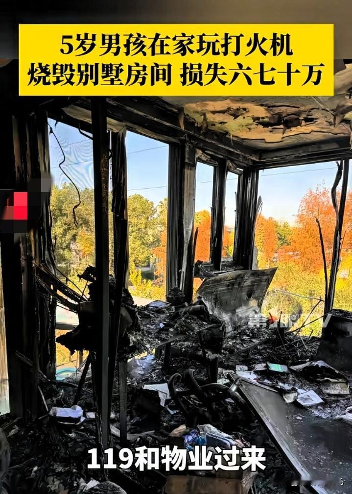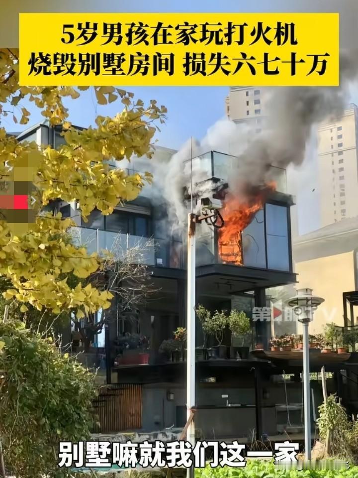 别墅起火,损失60多万。失火的原因,想过是电路起火,也想过是有不怀好意的人故意纵火。谁知,一番排查,竟然是一只掉落在床下被遗忘的打火机。 12月17日,湖北武汉一小区,一别墅内突然冒出冲天火光,惊动了物业和119先后赶赴失火现场。 幸亏消防救援及时,扑灭大火后检查,发现只烧毁了楼上一个房间。 别墅的主人毛先生说,这次火灾烧毁家具、电器、门窗估价超60万,不过庆幸没有家人受伤。 新装修的别墅,都是水泥钢筋结构,怎么会突然起火呢? 如果是外人潜入纵火,应该不可能。因为起火的是别墅二楼,失火的时候,毛先生和家里几个大人都在一楼,并没有看到有人上楼。 难道是忘记拔充电插头,引发了电火,毕竟这种情况新闻上报道了很多案例。 大家纷纷猜测,这起蹊跷的火灾。 可是,让人没想到的是,经过现场排查锁定起火点,再加上询问当时唯一在二楼的毛先生家5岁儿子,大家这才知道,原来这次火灾的元凶,竟然是一只打火机引起的。 这间被烧毁的房间,是毛先生二楼的主卧,房间面积大,通风效果好,所以有吸烟习惯的毛先生,有时候偶尔会在这个房间吸烟。 而,不知道什么时候,一只打火机从衣服里掉到了床底下,被忘记找出来。 起火的这天,大人们都在一楼,只有5岁的儿子独自在二楼主卧玩。 小孩子好动,这里跑一下,那里又坐地上爬,就这样,无意中被他找到了床下的打火机。 他拿起打火机,好奇地点火玩,然后随手抽了一张纸巾点起来。 点火的纸巾燃烧的快,孩子被火烫痛了,本能性甩手,好巧不巧,把那着火的纸巾扔到了窗帘上。 窗帘遇明火迅速烧起来,又陆续引燃房间里的家具,电器等别的可燃物品。 孩子可能是被吓懵了,忘记喊大人救火。 是楼下的大人们闻到烟味,跑到院子抬头看,才知道自家二楼着火了,于是紧急联系消防。 实在话,能够住这么大别墅,一个房间物品就价值几十万,当然是个不差钱的主。 事后,毛先生感到很庆幸,还好只是损失几十万,家里人没出事比什么都强。 孩子还小,为这事打骂他也没用,只能后面加强教育,把玩火的危害 ,掰开了揉碎了,耐心地告诉他那些道理。 家里的打火机,也会放一个安全的地方,让孩子够不着。 毛先生家的这次火灾,多亏家里有大人,不然就不知道会损失多少。 不过,因为毛先生家是别墅,没有像电梯高楼起火那样危及楼上楼下邻居,减少了一些麻烦,这也算是幸运吧。 这件事情告诉我们,一件很小的事情,也可能间接引发一场不堪的火灾。 我们能做的就是提前预防,要教育孩子别玩火,很危险。 要让他知道一些基本的防火知识,告诉他万一起火了该怎样逃生?怎样呼救自救? 那么,你们带孩子的时候,在教育孩子不要玩火的同时,会告诉他们一些防火知识吗? 素材来源网络——侵删