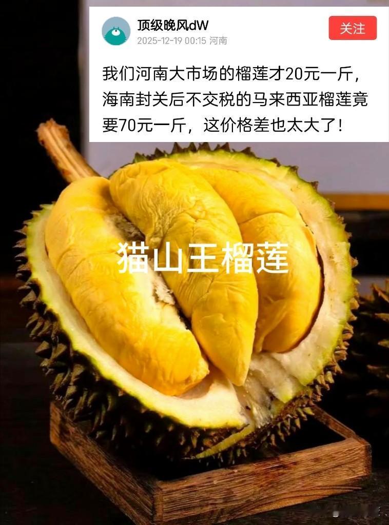 海南封关后,从马来西亚鲜采的猫山王榴莲,第一时间零关税冷链空运至海口。 当猫山王榴莲快速抵运美兰机场,被迅速送达海口旺豪超市后,瞬间便被大排长队的人群抢购一空。 一斤七八十元的猫山王榴莲,一个就要好几百元。 如此昂贵的榴莲,竟还遭到了人群的疯抢,很多网友都表达了不可理解。 就像河南的这位网友所言:我们大河南的榴莲才20元一斤,海南封关后不交关税的马来西亚榴莲竟要70元一斤,这价格差也太大了。 为什么海南免税后的榴莲价格,还要比内地销售的榴莲价格贵出许多呢? 这种贵甚至让网友们感觉,那群疯抢猫山王榴莲的人是不是疯了!!! 其实,这完全是一些网友对榴莲的认知差所造成的。 榴莲,锦葵科榴梿属植物,热带水果之王,品种多达数百个。 在我国销售的榴莲,最常见的品种叫“金枕头”。前面那位河南网友所说的20元一斤的榴莲,大概就是金枕头榴莲。 海南这次进口的猫山王榴莲,与国内常见的金枕头榴莲,究竟有何区别呢? 猫山王榴莲,是榴莲品种中公认的顶级品种,被誉为水果中的爱马仕。 猫山王榴莲,原产于马来西亚,尤其以来自马来西亚彭亨州劳勿县的品质最为上乘,价格可达普通榴莲的十倍以上。 正宗的猫山王榴莲,必须是树熟,自然落果,不可提前采摘。因此,在中国市场,以往的猫山王榴莲,主要以冷冻果肉的形式进口。 海南这次采购的猫山王榴莲,就是来自马来西亚的劳勿县,如此顶级的猫山王树熟鲜果榴莲,免税后七八十元一斤的价格,确实值得被抢购一空。 而国内常见的金枕头榴莲,主要来自泰国,人工采摘,不像猫山王榴莲为树熟,自然掉落。 金枕头肉厚,耐运输,是初尝者的入门款榴莲。 海南封关 海南自贸港 猫山王 金枕头 榴莲 榴莲品种 马来西亚榴莲 泰国榴莲 中国成泰国榴莲全球最大买家 榴莲猫山王 榴莲产地价格 榴臣猫山王榴莲 榴莲海关