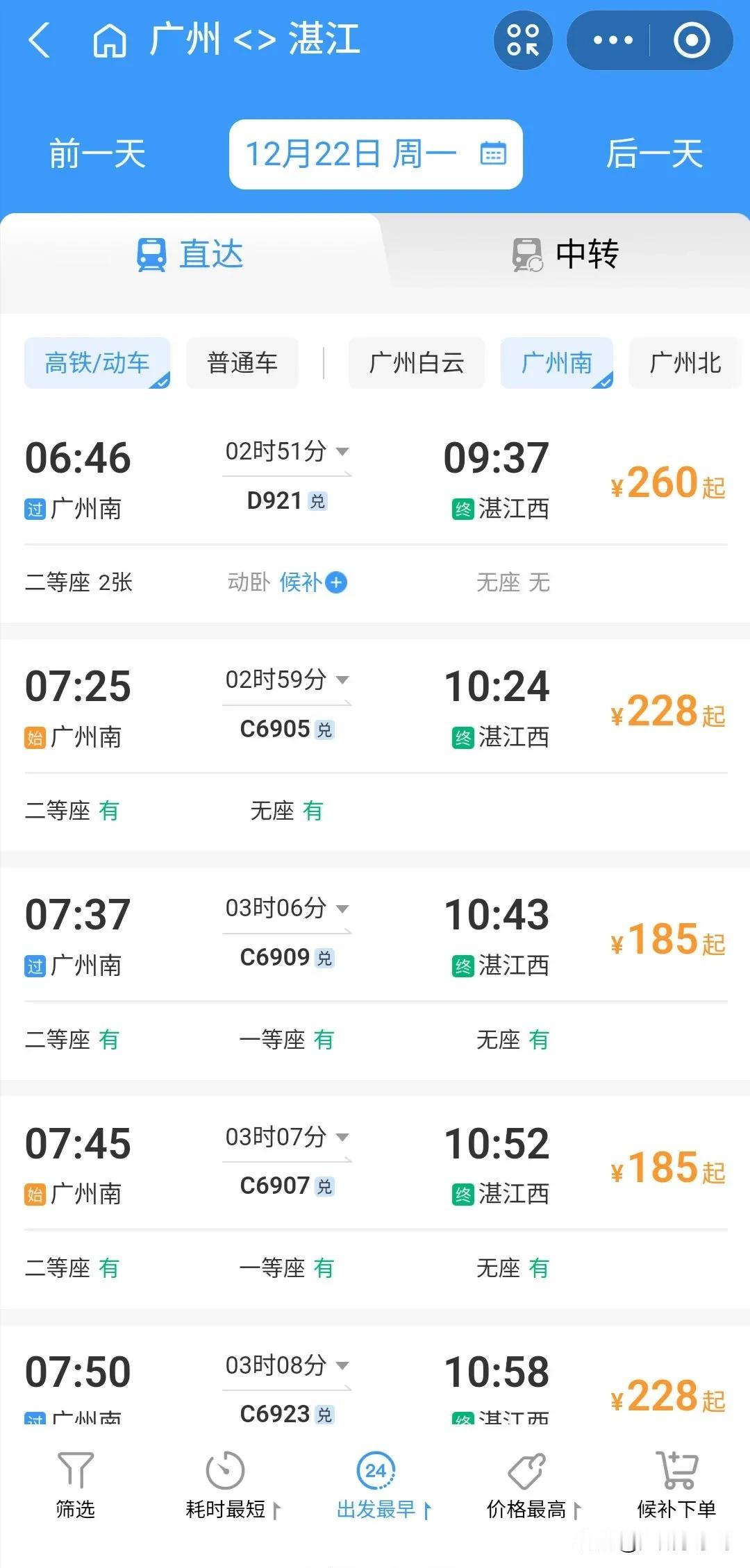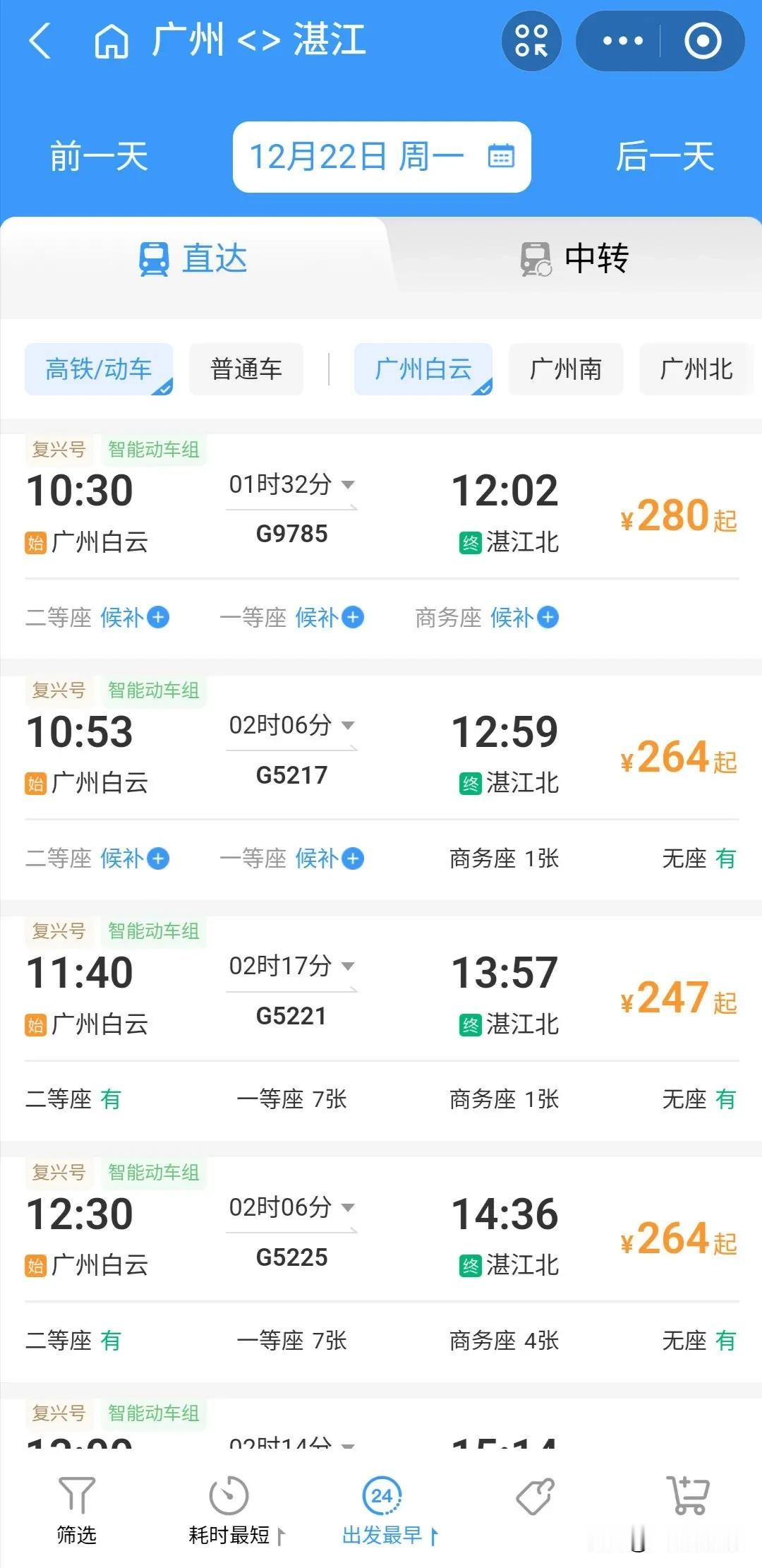 广湛高铁票价 广州白云至湛江北最低仅需247元,最高不超300元,看了这票价是不是觉得超预期呢? 相比又贵又慢的江湛铁路广州南至湛江西,广湛高铁开通后应该可以摆脱水鱼号了吧!