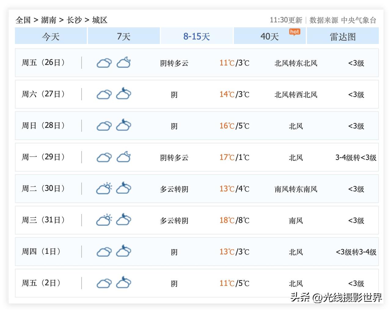 我的妈啊!湖南省长沙市,即将从夏天跑步进入冬天啊!12月19日下午,长沙市最高气温24度,身体好的人可以穿夏天的衣服……可是,明天,长沙降雨降温……12月21日,长沙气温暴跌至6-12度……12月25日,长沙气温跌至3-7度……这……真的是有夏天直接跌入冰窟窿的感觉吧?! 好在,12月底,长沙市还有一波回暖,最高气温16-18度…… 好吧,长沙市,最近天气变化大,一会儿升温,一会儿降温,早晚温差也大……长沙的小伙伴们,穿衣服一定要保守一点,否则,很容易感冒哦!