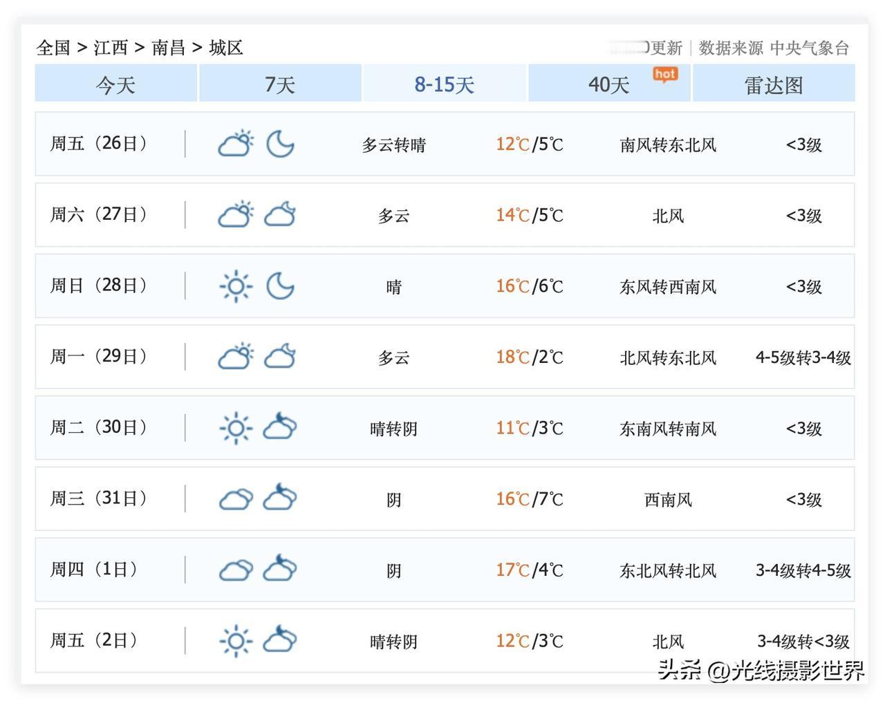 江西省南昌市,12月19日遭遇了雾霾天,最高气温23度,非常温暖,身体好的人可以穿夏天的衣服上街!但是,强冷空气即将速冻南昌,寒潮可能会带来优良的空气质量! 12月21日,南昌气温将会暴跌至7-11度……真正的断崖式大降温!这波冷空气可能真的有点迅猛啊! 只是,问题是,这波冷空气,很快就消失了! 12月22日到24日,南昌市快速回暖……最高气温重返18度…… 总体来说,12月下旬,南昌市依旧是暖冬,比较温暖! 甚至于,超级计算机认为,1月1日,南昌最高气温17度……这……难道1月的南昌也会是暖冬?!