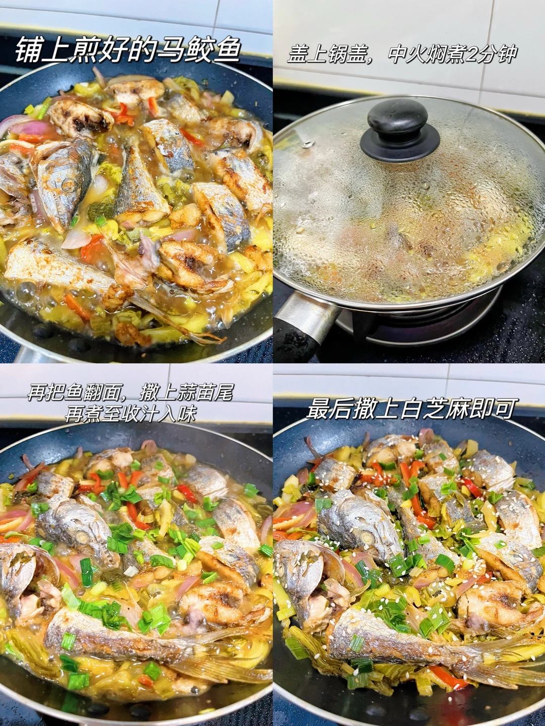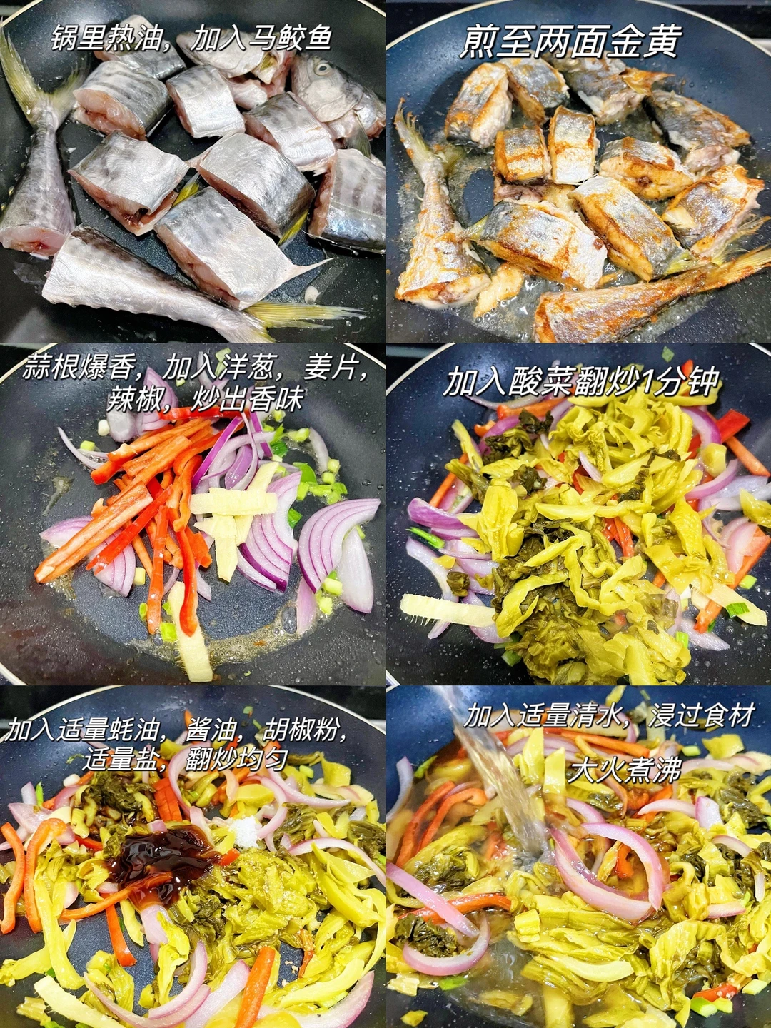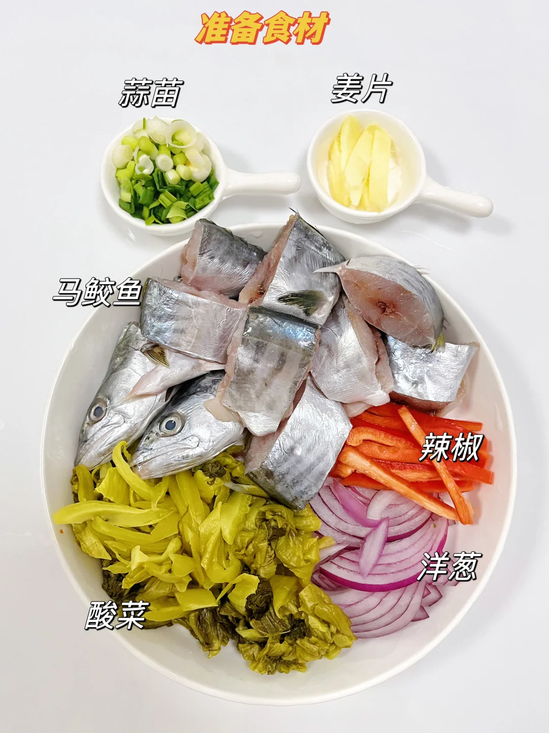 马鲛鱼、酸菜、洋葱、辣椒、姜片、蒜苗