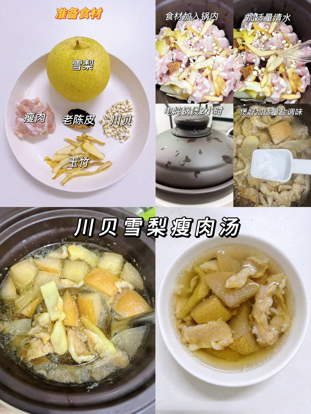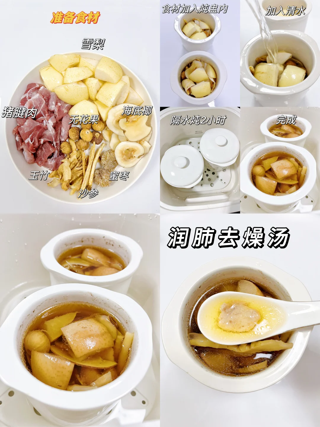 冷空气突然降临,皮肤缺水,👄干,👅干,🫁热,喉口龙痒,可以多喝雪梨汤水,润燥补水。 今天分享九款适合秋冬喝的雪梨汤水,食材都是家庭常备,做法也简单。 1️⃣ 润月市🫁去燥汤 2️⃣ 雪梨灯心草润燥汤 3️⃣ 山药雪梨排骨汤 4️⃣ 雪梨无花果龙骨汤 5️⃣ 润月市🫁化痰汤 6️⃣ 川贝雪梨瘦肉汤 7️⃣ 秋梨银耳龙骨汤 8️⃣ 雪梨银耳陈皮水 9️⃣ 沙参玉竹麦冬雪梨水 主页和图片有详细做法哦!