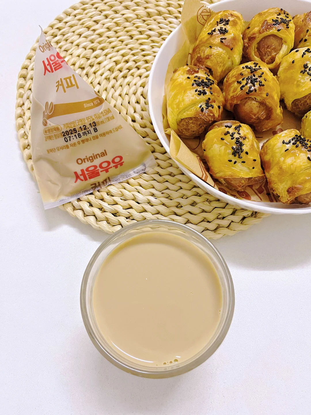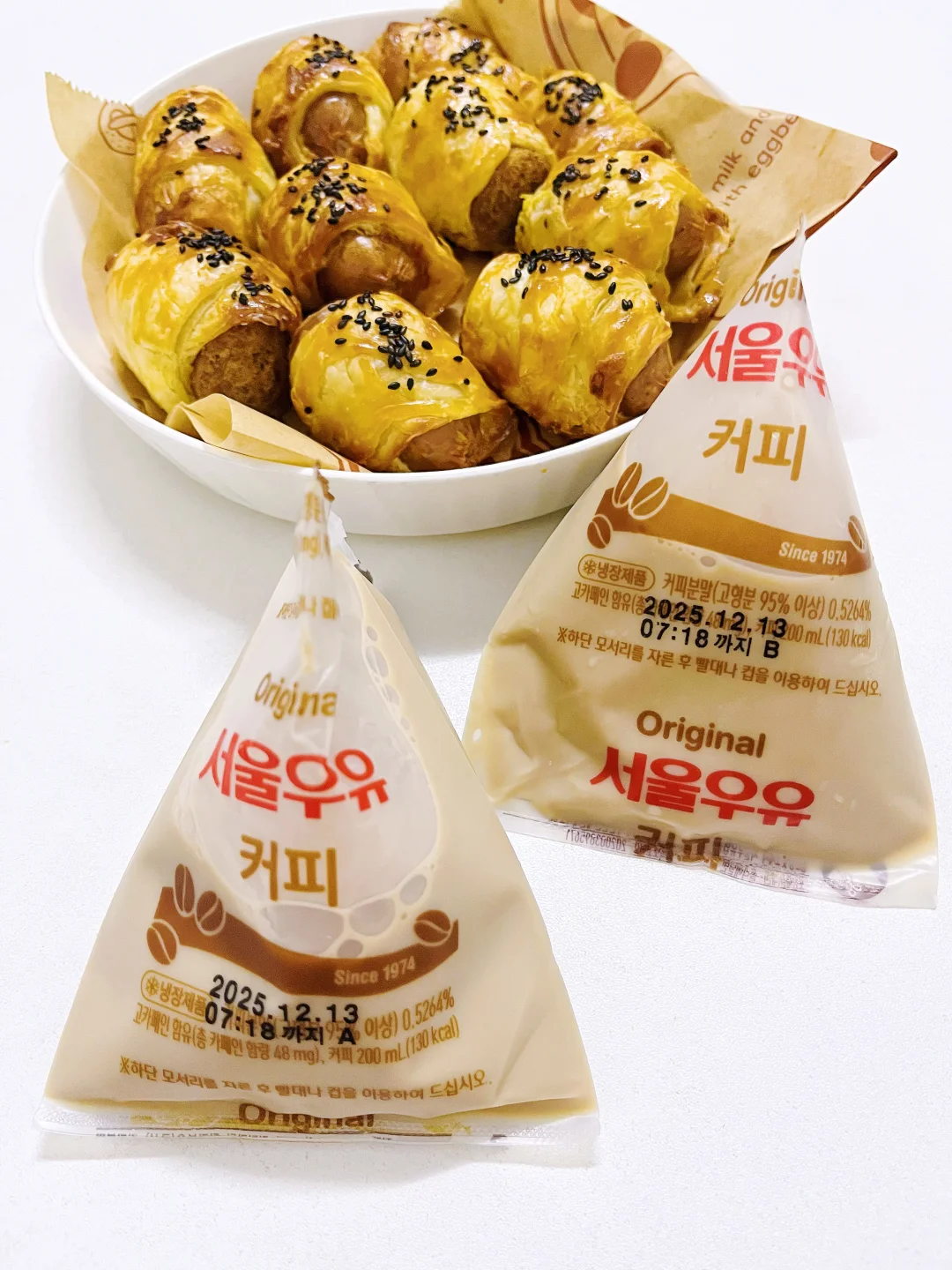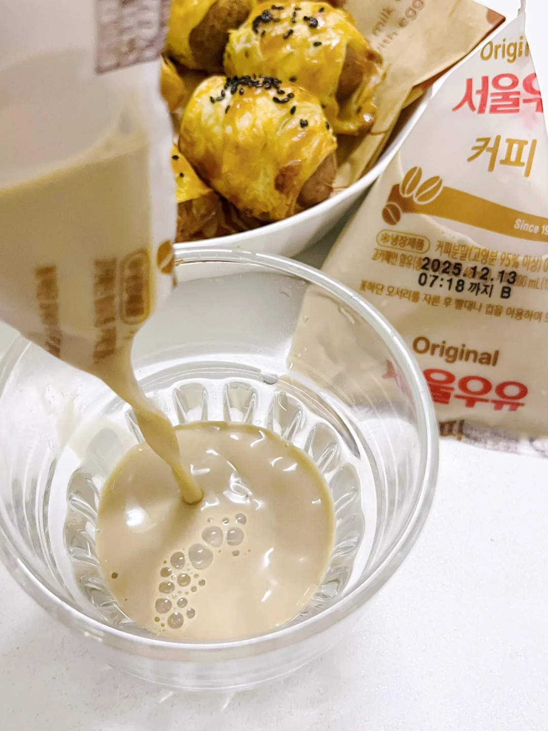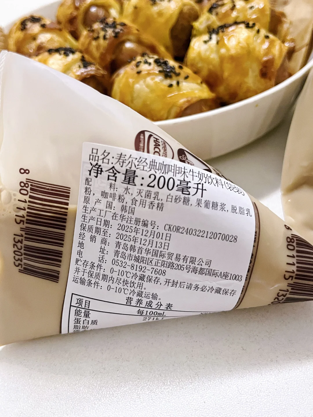 我搭配了韩国很火的寿尔咖啡牛奶,这个三角袋子拿着好顺手!咖啡味很浓,但用的是生牛乳,口感特别顺滑,不甜腻,配咸口点心绝了!而且是韩国原装,品质很放心。