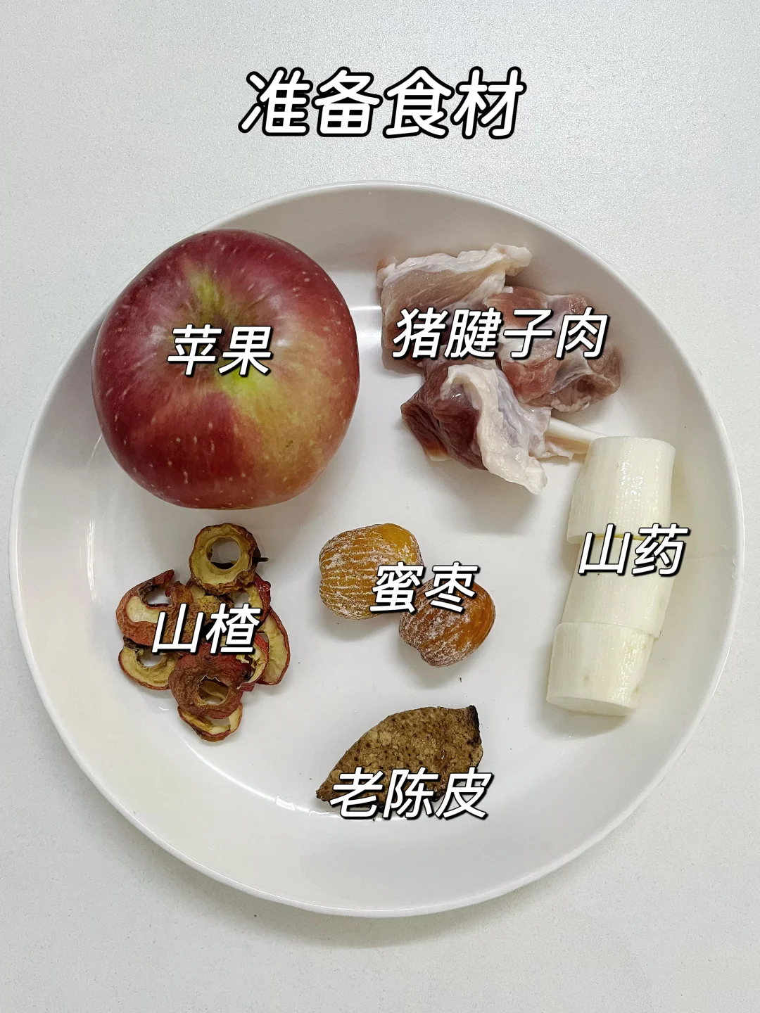苹果、猪腱子肉、山药、山楂、蜜枣、老陈皮。