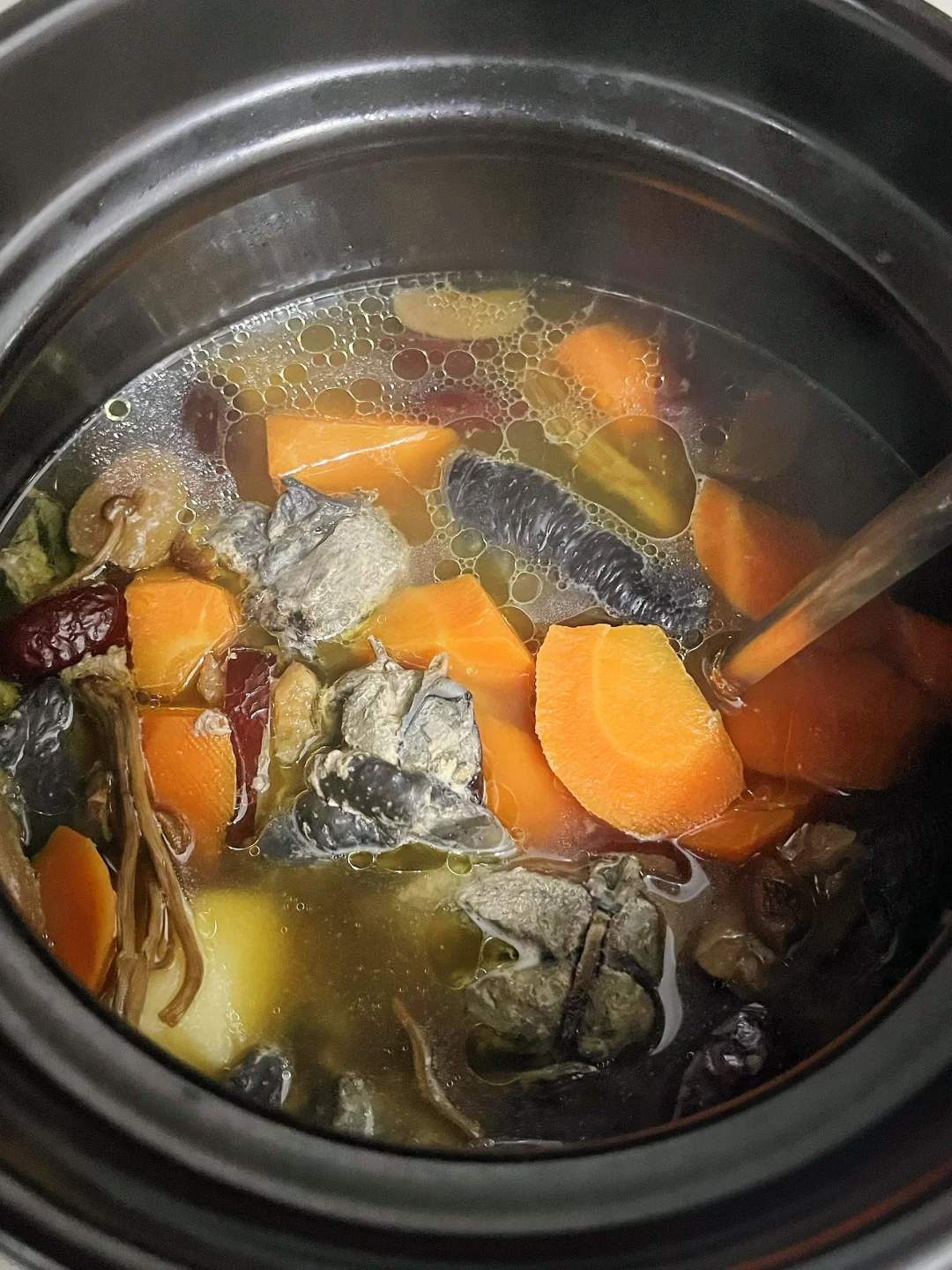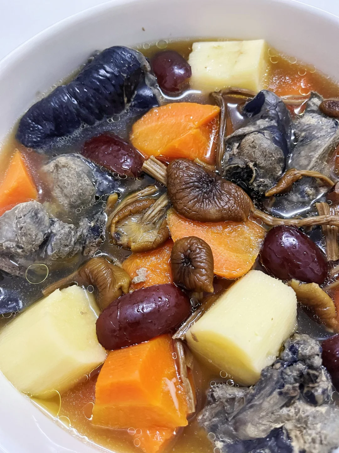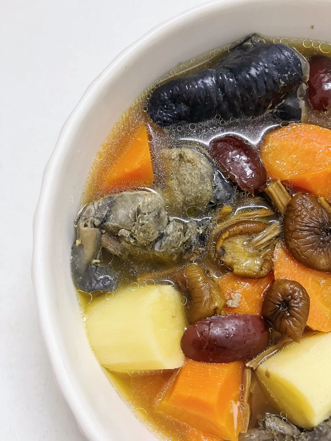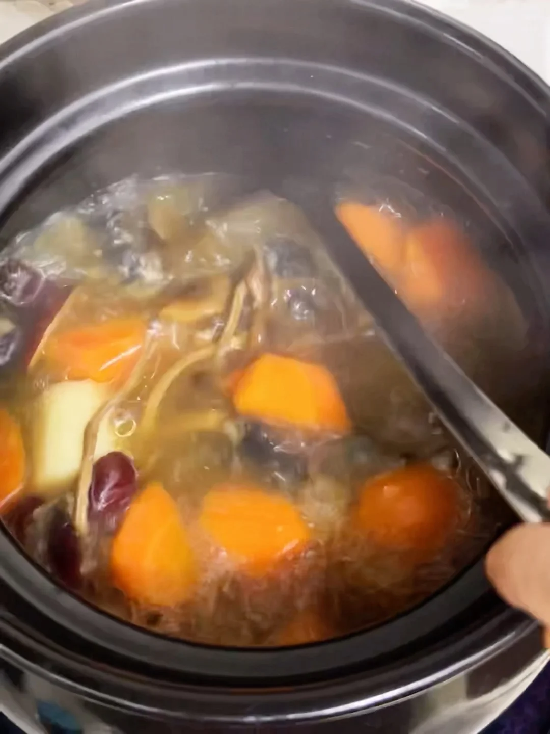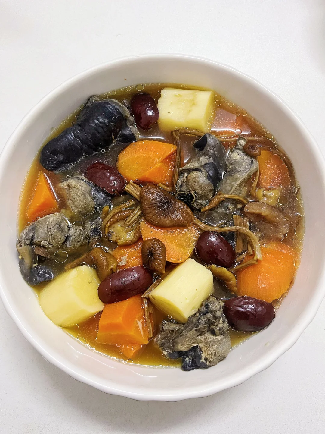最近天气转凉,给自己炖了一锅超滋补的茶树菇山药乌鸡汤,加入胡萝卜和红枣,汤汁更鲜甜,喝完浑身暖乎乎的。 🌟喝这碗汤的好处: • 茶树菇增强免疫,一年四季都可以吃 • 山药健脾养胃,对消化很友好 • 乌鸡补气🩸,适合容易手脚冰凉的女生 【准备食材】 乌鸡半只、茶树菇1小把、山药半根、胡萝卜1根、红枣6颗 【做法】 1. 茶树菇提前泡软,其它食材也切好洗净。 2. 所有食材放入锅中,加适适量清水。 3. 大火煮开转小火慢煮30分钟,出锅前加盐调味。 这个汤厨房小白都能做,材料和做法超简单,这样搭配煮的汤鲜甜有营养,鸡肉嫩滑,每周喝一次感觉整个人都元气满满!姐妹们快安排起来~ 💡小贴士: • 茶树菇泡发的水不要倒掉,一起炖汤更香 • 山药去皮后容易氧化,可以泡在水里 • 红枣去核不易上🔥