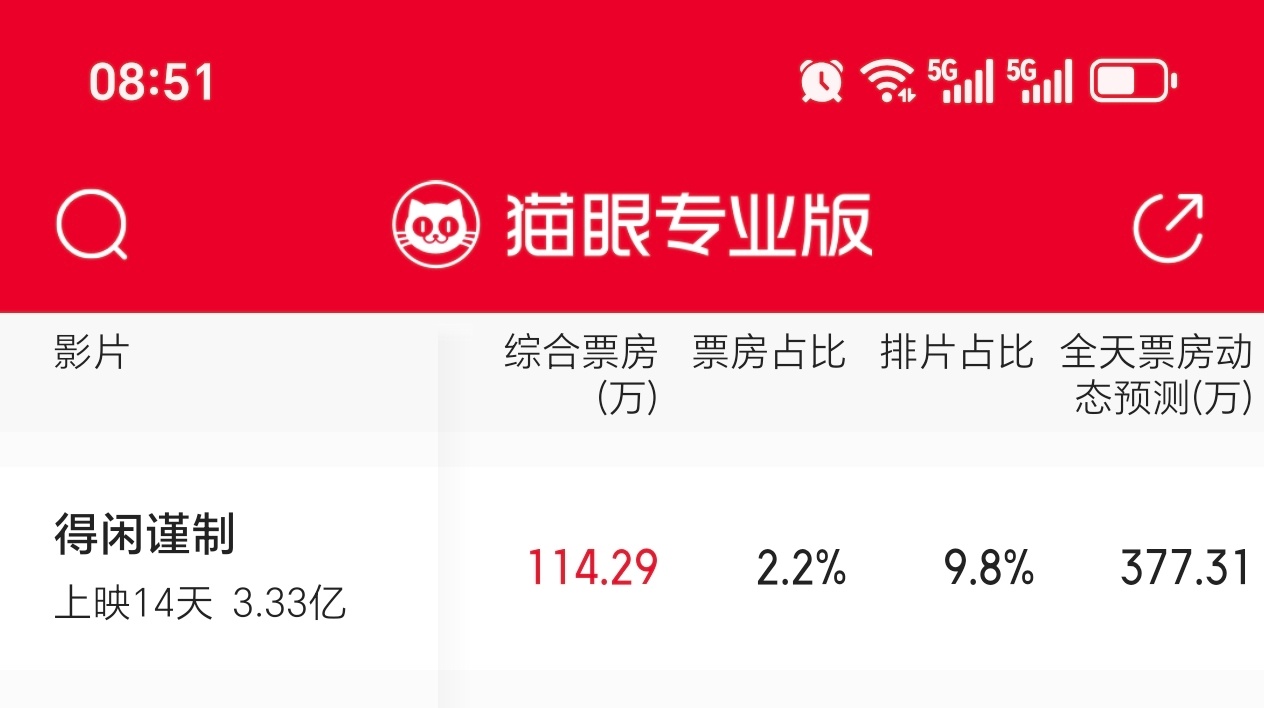 得闲谨制票房预测又涨了!我们的4亿目标在招手 明天票房预测956,咱们明天努力一