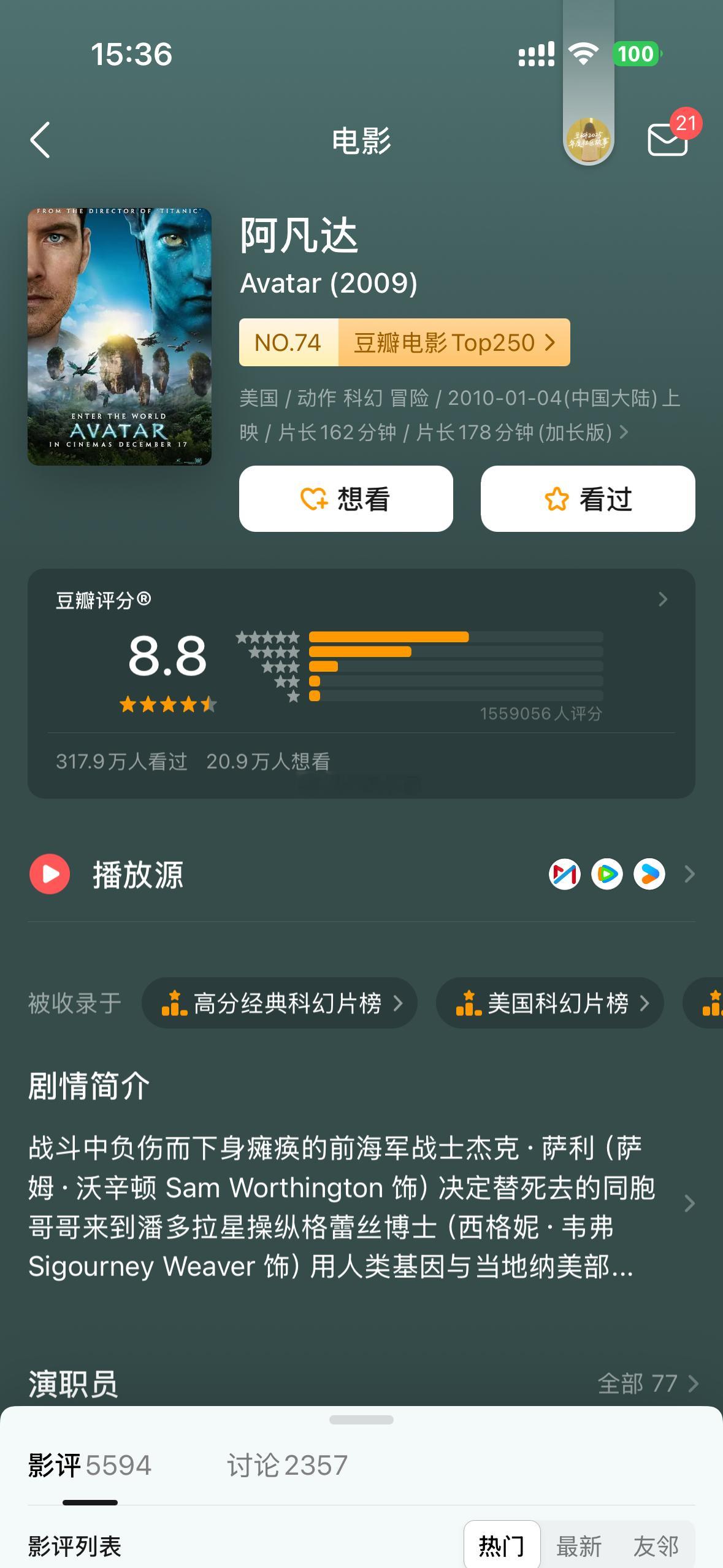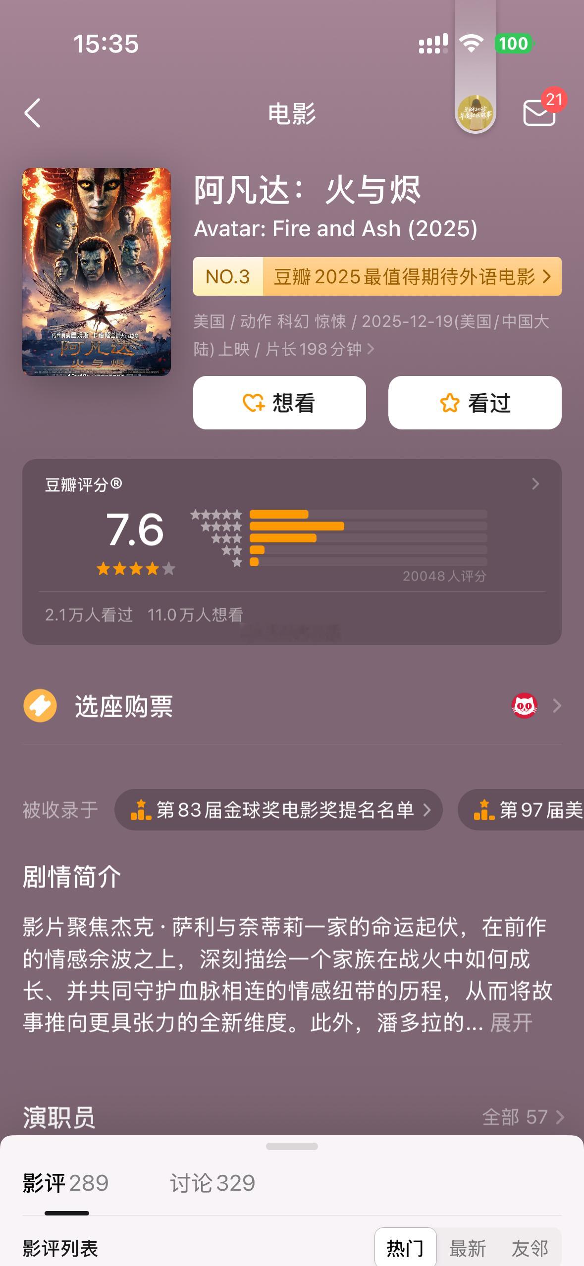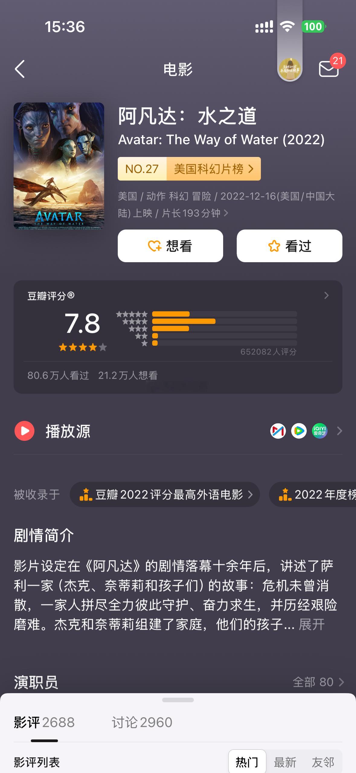 《阿凡达3》豆瓣开分7.6分,也是评分最低的一部
