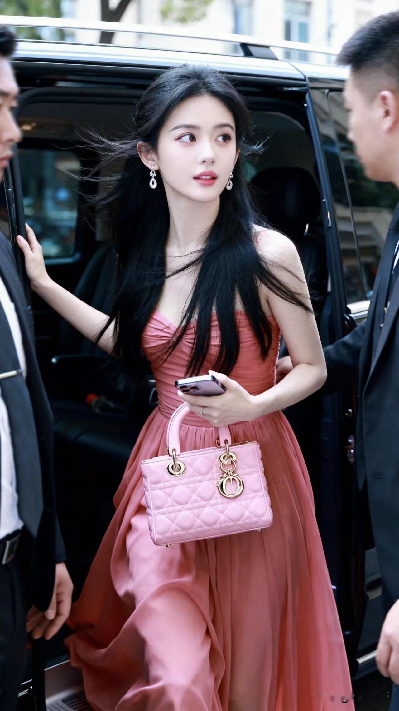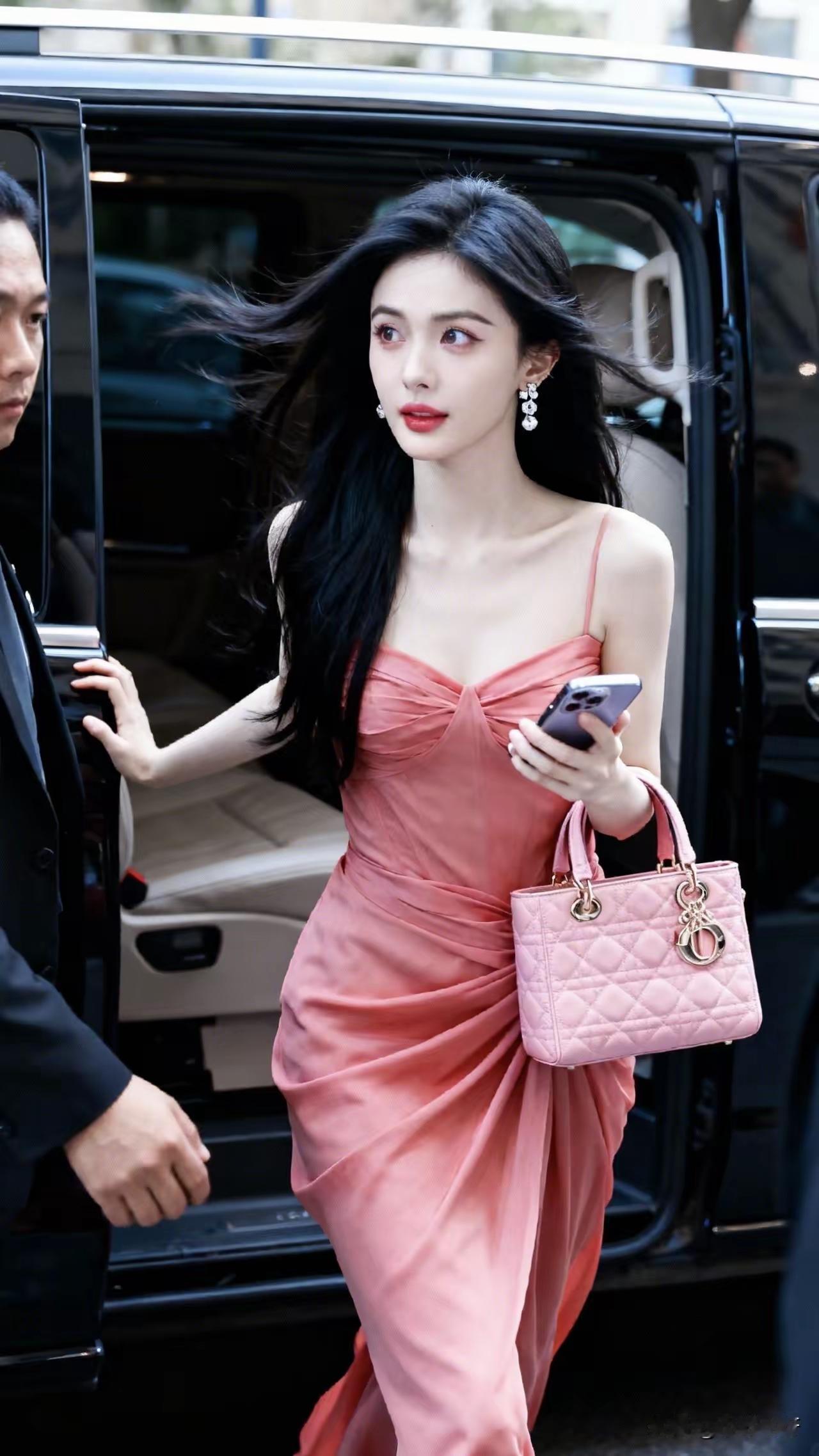 优雅出街,粉色手袋与晚礼服相得益彰,时尚嫩粉色礼服 !👗👜✨