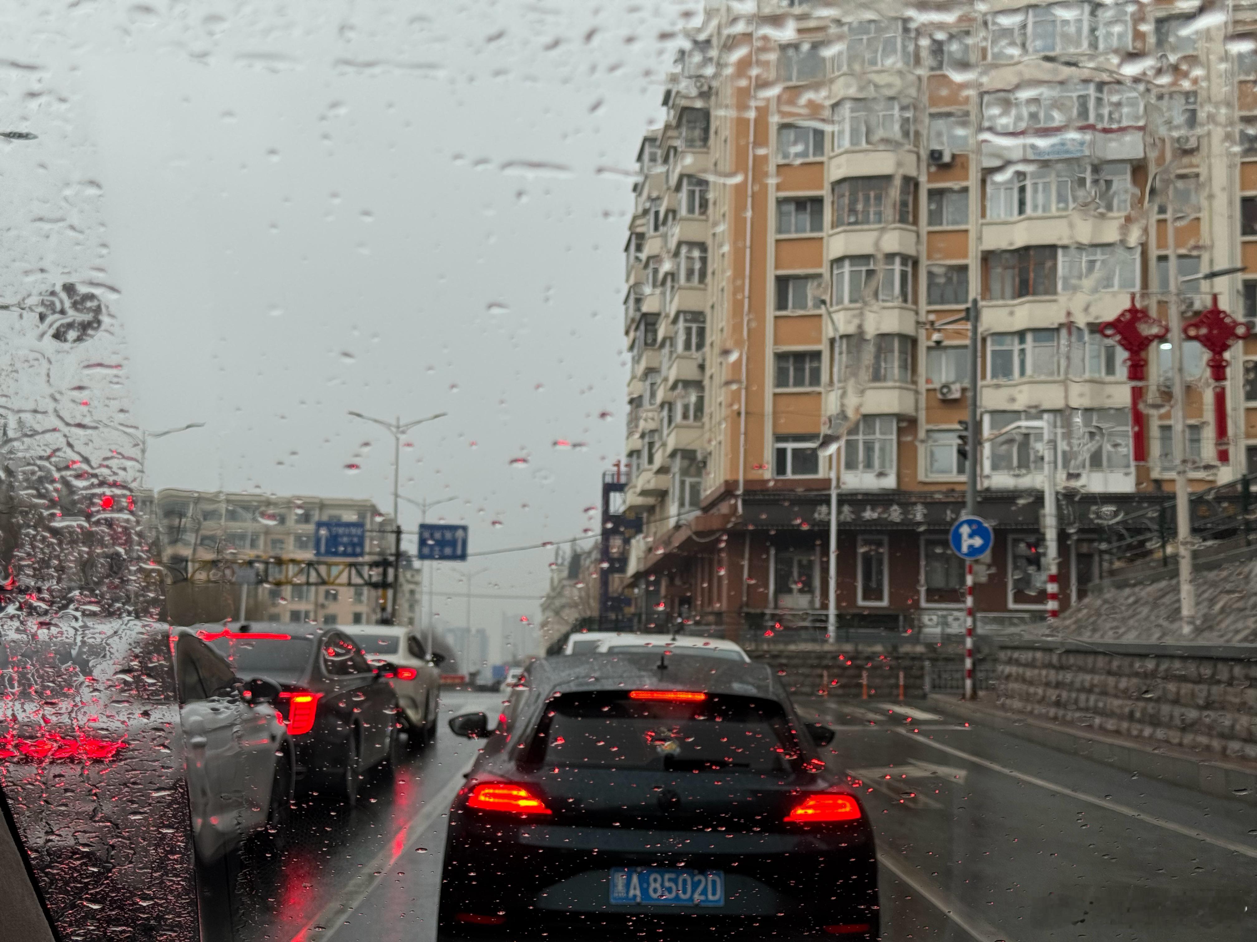 下……雨了??还挺大??早晨ku'ku下雪,现在juju下雨哈尔滨