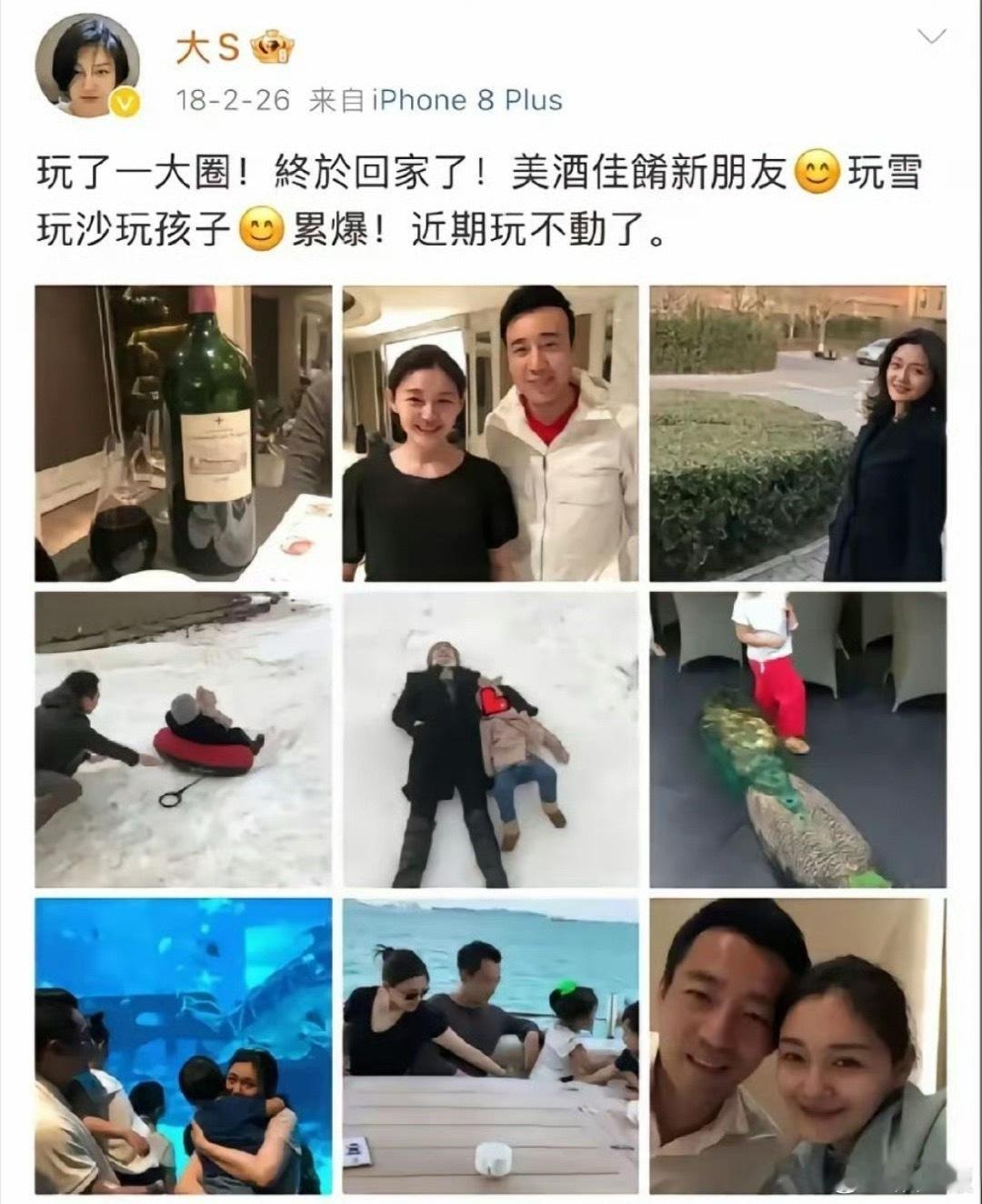 大S最开心的时候应该是2018年,在微博上总能看到她幸福的痕迹…