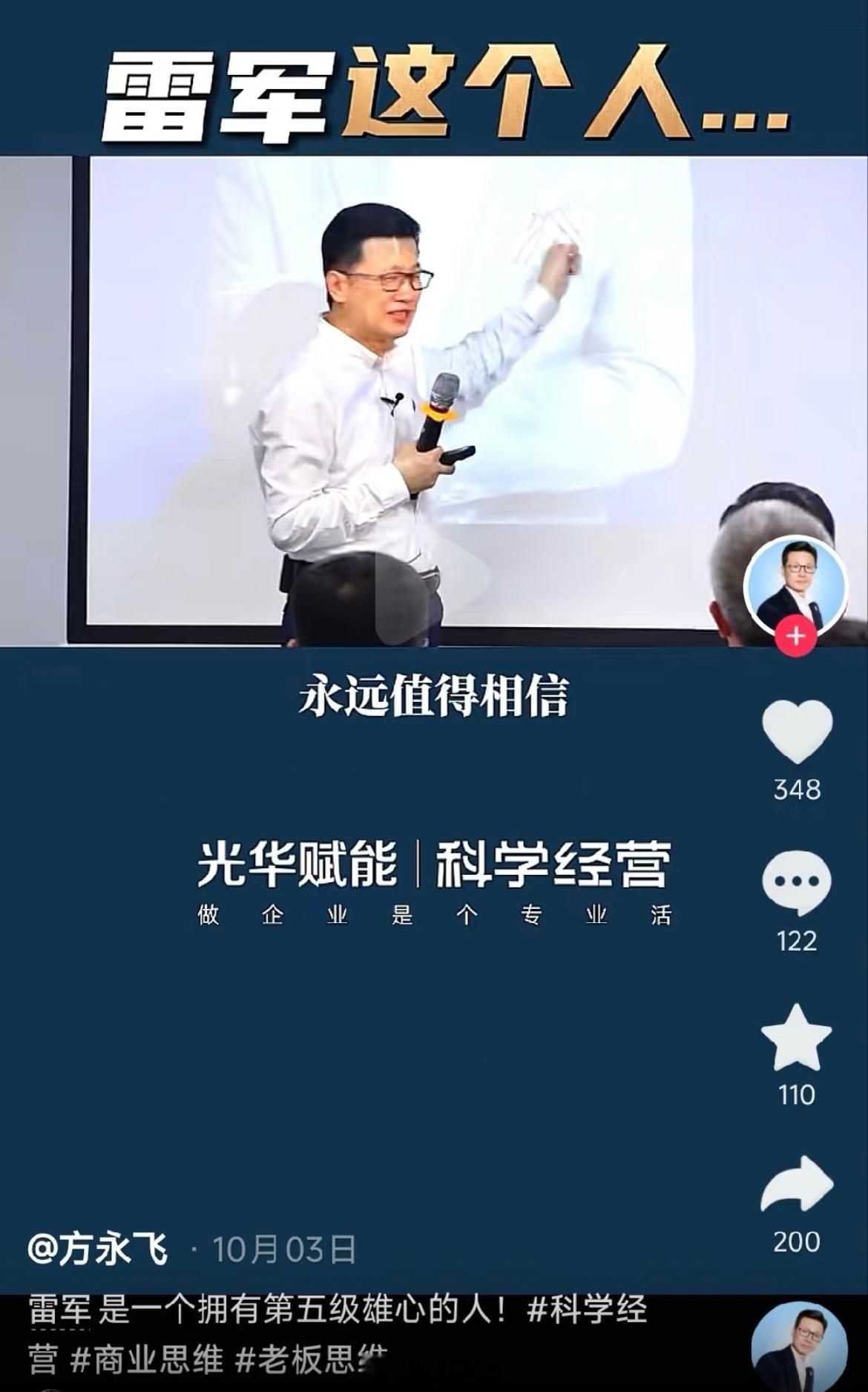你能想象吗?十月份的一个视频还说:雷总永远值得相信